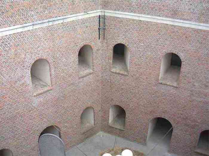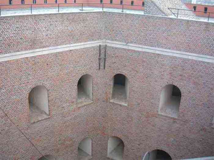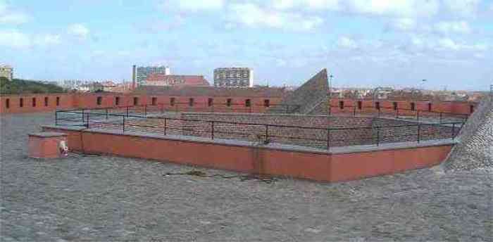 Construction of the fort began in 1810 by order of Napoleon and was completed in 1814. It is a pentagonal fort surrounded by a dry ditch, intended to serve as a rear base for the invasion of England. It is named Fort Impérial. Some setbacks meant that Napoleon could never launch this campaign, and the military destiny of the structure ended before it had even begun. It was occupied in turn by the French, the English, the Dutch and then the Germans, and experienced many abandonments before becoming part of the Flemish heritage. The French used it as a depot for their armament until the fall of Napoleon; then the fort became part of the Kingdom of the Netherlands under William I, who included it in the Wellington belt protecting the kingdom from France. It was renamed Fort William and fell into disuse. With the revolution of 1830, the structure was renamed Fort Napoléon, and Belgian neutrality caused it to lose what remained of its importance. In 1865, Ostend lost its function as a fortified town, and in 1883 the fort was largely destroyed. It was with the occupier, in 1915, that it regained some usefulness as an officers’ mess, where the officers left some frescoes, of which only one could be saved and is currently being restored. With the departure of the Germans in 1918, the fort was again abandoned, and in 1932 the municipal administration of the city installed a local history museum there, which disappeared with the return of the Germans in 1940. During the occupation, it served first as accommodation for German artillerymen, then as a detention centre for Roma rounded up everywhere. They almost all lost their lives there. At the same time, the occupier completed the construction of the new shelters of the Atlantic Wall, in reinforced concrete, less than a hundred metres from the fort. Driven out by the Allies, the Germans left it once again abandoned and marked with a sad cross. From 1949 to 1956 it served as a playground for the neighbourhood children, then it sank into oblivion until 1976, the year it was listed as a monument, but that did not prevent its decay. It had to wait until 1996, the year the Flemish Heritage Foundation took it under its benevolent wing, to be reborn to a somewhat more glorious destiny.