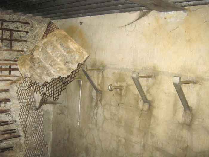 Belgische Befestigungen des Zweiten Weltkriegs, Versterkte Stellung Lüttich, erste Widerstandslinie, Abschnitt Neufchâteau-Visé, Unterstand NV18. NV18 befindet sich in einem Feld, 70 m von der Straße Warsage–Mortroux entfernt, und 75 m vom NV 17, das in die entgegengesetzte Richtung feuerte. Es deckte den Süden von Bombaye und kreuzte sein Feuer mit dem NV19. Die Schiesscharte ist offen, die Scharniere und Befestigungen für den drehbaren Verschlussflügel sind vorhanden. Das Äußere ist in gutem Zustand, außer der Vorderseite, die Einschläge erhalten hat. Der Schutzaushub wurde entfernt. Der Eingang befindet sich nicht in der Nische der Schleuse, sondern gegenüber und ist vermauert. Das Innere ist in gutem Zustand und vollständig. Lafettenstütze für das Chardôme-Geschütz. Ein Granatwerferschacht verteidigte den Eingang. Die Schiesscharte ist innen und außen stark beschädigt. Um in das Werk einzudringen, muss man durch die Schiesscharte einsteigen…