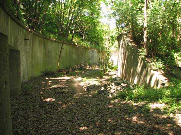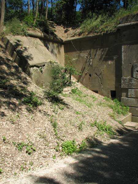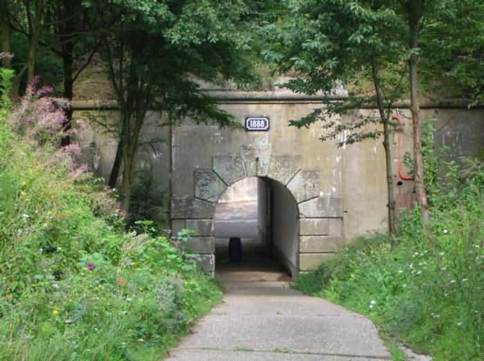 Fortified Position of Liège, north-northeast of the city, 1888-1892. +/- 135 m/asl. 1 cupola 2 x 15 cm, 2 cupolas 1 x 21 cm, 2 cupolas 2 x 12 cm, 4 turrets 1 x 5.7 cm, 1 armored searchlight, 8 cannons 5.7 cm for flanking. Large quadrangular fort with a narrow curtain wall at the gorge. It had the distinct honor of being the first in history to undergo a bombardment by 420 mm projectiles. It suffered very significant damage to the left half-escarp. The consequences were the removal of the left curtain casemate and the abandonment of practically the entire left half-escarp. A caponier (unique case) was added to the escarp of the right half-gorge front. In addition, there was an accidental explosion of an ammunition depot shortly after 11 November 1918. Rearmed during the interwar period, it long served as a powder magazine and was then sold to a scrap dealer who uses it as a dump. Recently taken over by a pro-bat association which will endeavor to clean up the site and open it to the public in summer. Architecturally speaking, it is probably one of the most interesting and atypical forts of the FPL. Today (2008), the galleries are closed in winter for the protection of bats, but visits can be made on request in summer. A friendly association promoting donkey therapy occupies the glacis and ditches.