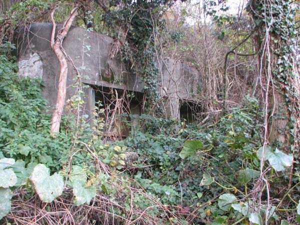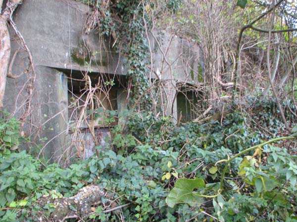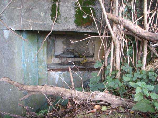 Position Fortifiée de Liège, quatrième ligne de résistance, abris d'intervalles, intervalle Pontisse-Lixhe ou ligne de Meuse, abri PL 18, 99 m/alt. Situé entre la rue de Pireux et le Thier des Bruyères, il s'agit du abri de type intervale PFL2, apparement non modifié, à deux embrasures frontales pour mitrailleuse. Particulièrement embroussaillé lors de notre passage, son entrée et sa dalle de ciel n'étaient pas accessibles.