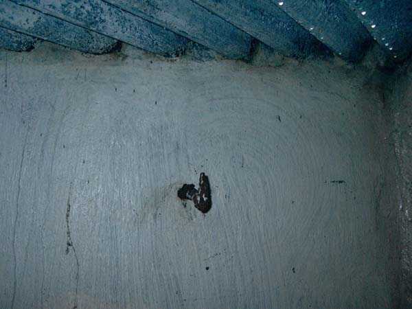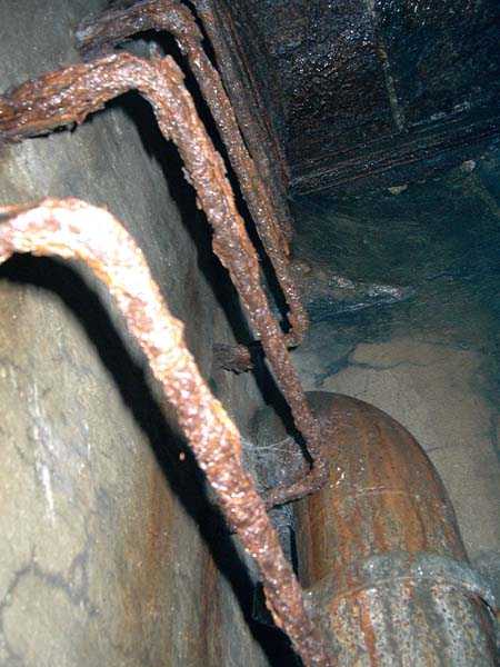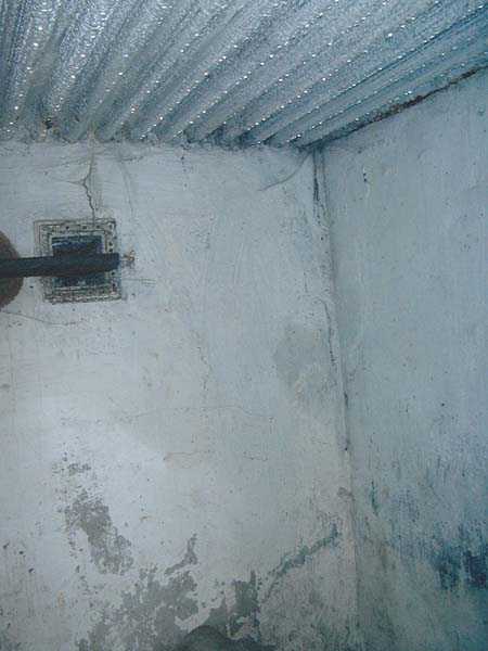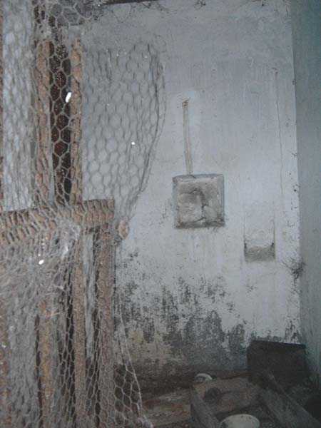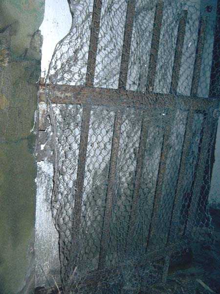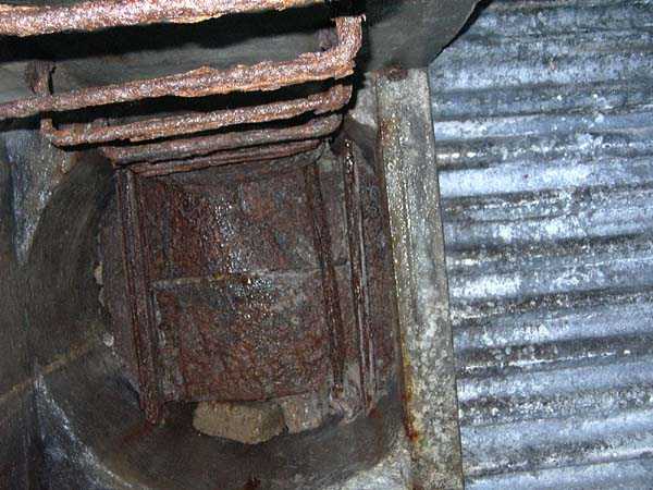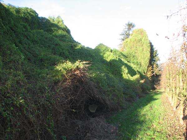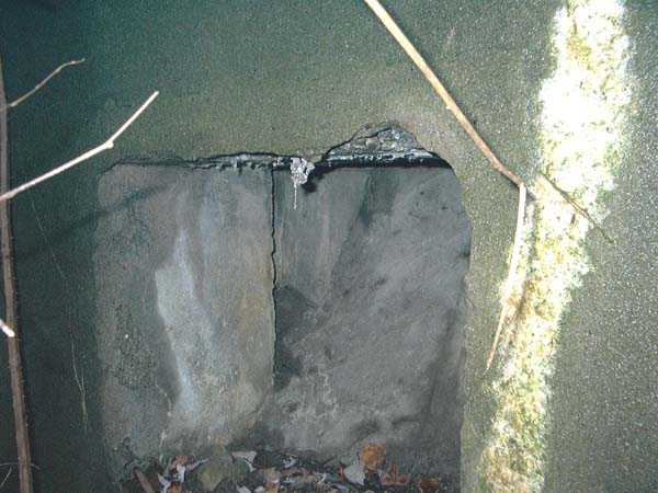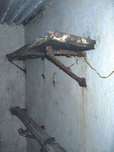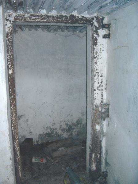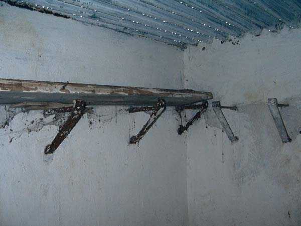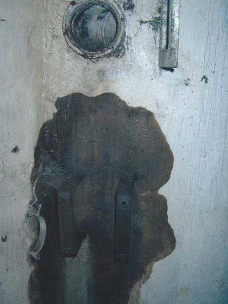 Fortified Position of Liège, fourth line of resistance, interval shelters, Pontisse-Lixhe interval or Meuse line, shelter PL 13, 111 m/asl. On the southeastern edge of the N671 road, Rue du Roi Albert at the entrance to Oupeye coming from Haccourt, it is completely buried under thorny bushes. Daniel was able to hack his way through with a machete in January to discover a fine FPL2 type interval shelter with two embrasures with Chardôme mount support for machine guns, one of which modified into a grenade launcher chute, and the addition of a GFM cupola (lookout and light machine gun) on the roof. Given the difficulty of access, this shelter is particularly well preserved and contains practically all its original metallic elements. Thus one finds the P1 entrance gate, the frame of the P2 louvered door and its hinges, the shelf consoles with the shelves, the L2 hooks for personal equipment, the L3 hooks for the individual weapon, the shelf with its fixing for the cartridge funnel, the rungs leading up to the now torn-off cupola, the acoustic tubes with their funnels and a good part of the forced ventilation. Only the fan, the P2 louvered door and, of course, the weapons are missing.