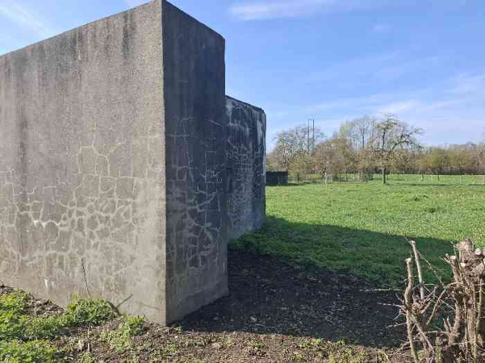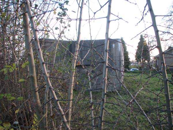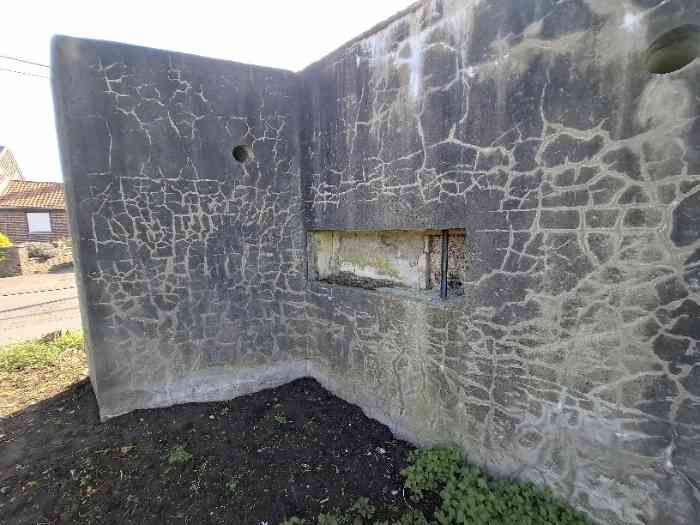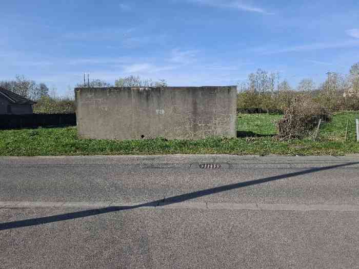 Fortified Position of Liège, fourth line of resistance, interval shelters, Pontisse-Lixhe interval or Meuse line, shelter PL 10ter, 52 m/asl. It prevented any movement in the sector between the Meuse and the Albert Canal on Rue de Liège in Lixhe, opposite the mouth of the Berwine at the point where the strip of land between Meuse and canal is narrowest, as it does not exceed 750 meters there. It had three embrasures for a machine gun, an embrasure for a 47 mm gun and a cupola for observation and light machine gun on the roof. Currently (11/2006), it is on private property and we do not know its condition.