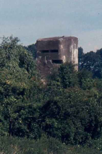 Fortified Position of Liège, fourth line of resistance, interval shelters, Pontisse-Lixhe interval or Meuse line, shelter PL 19, 92 m/asl. Located right at the entrance of the Loën gypsum quarry west of Rue d'Eben, this is a completely atypical shelter with four combat levels connected by rungs embedded in the walls. Leaning against the hill, when it still existed, level 1 features a corner embrasure for a machine gun; level 2 also features a corner embrasure for a machine gun, an emergency exit and a grenade launcher chute; level 3 presents itself as an FPL2 type interval shelter with two frontal embrasures for a machine gun, the entrance on the left side when facing the embrasures, an airlock with P1 entrance gate and P2 louvered door fitted with an armor plate; level 4 includes a GFM cupola for lookout and light machine gun on the roof slab. All levels had consoles for shelves, L2 and L3 hooks. Adequate ventilation must also have been present. Destroyed at the start of quarry operations.