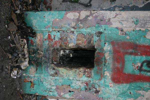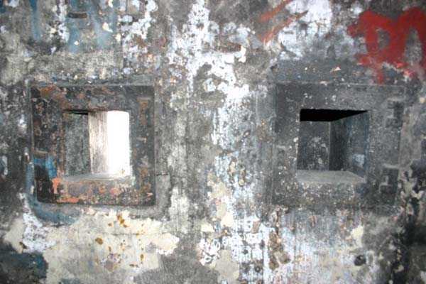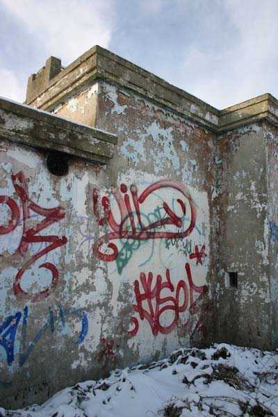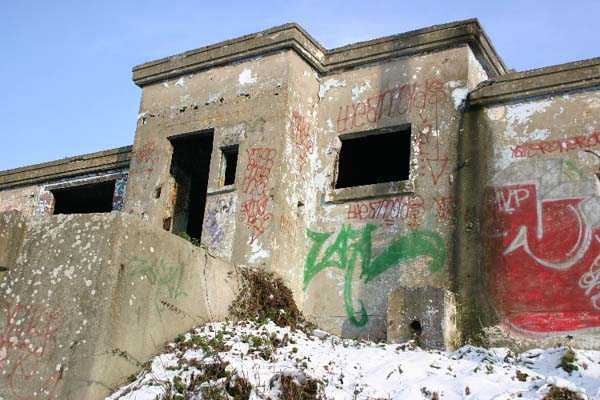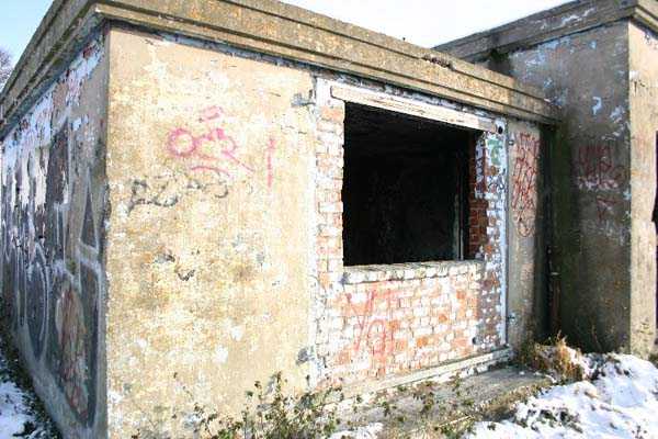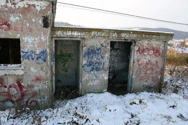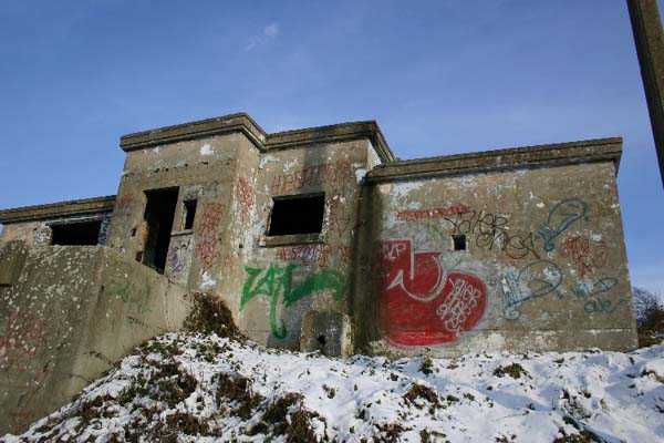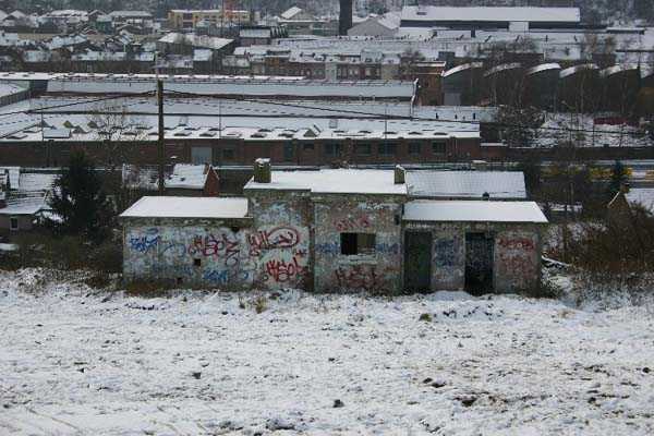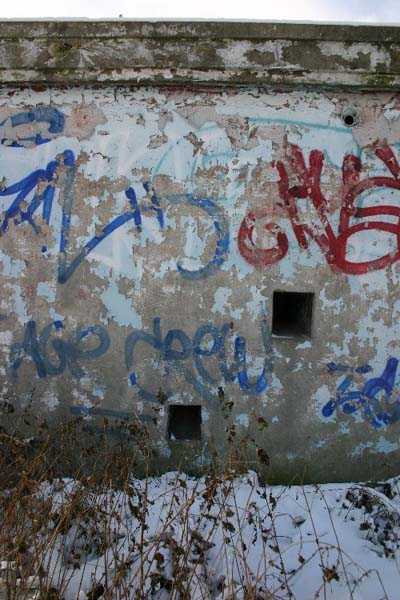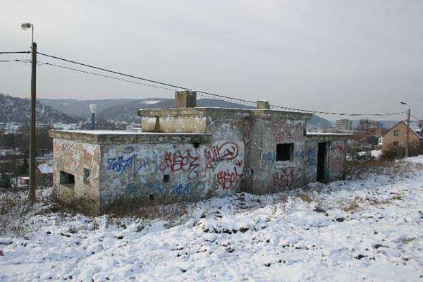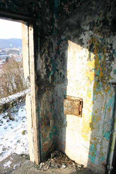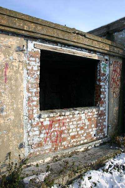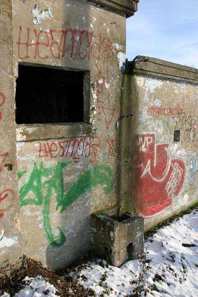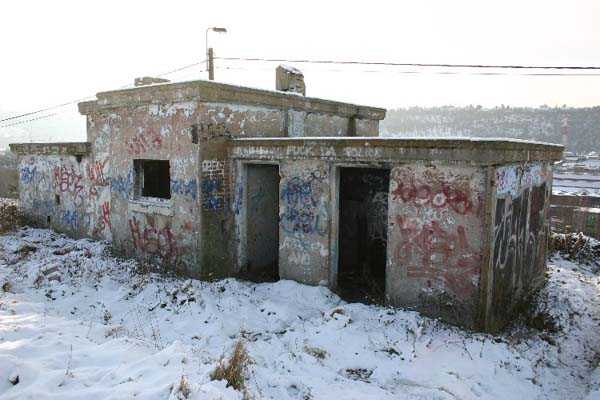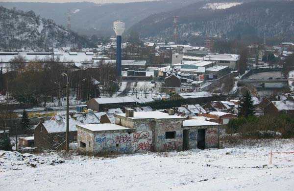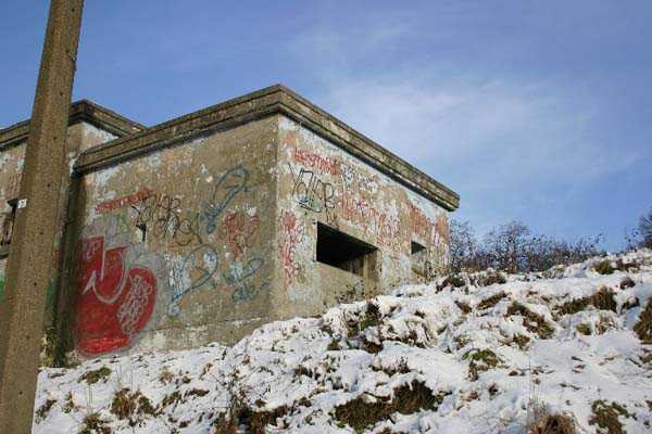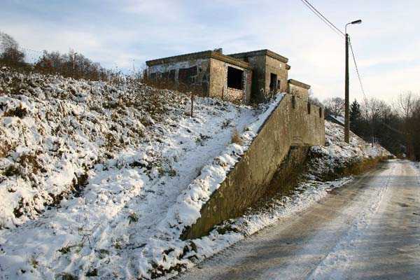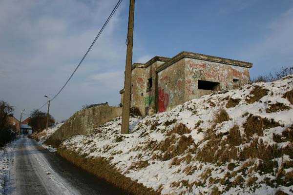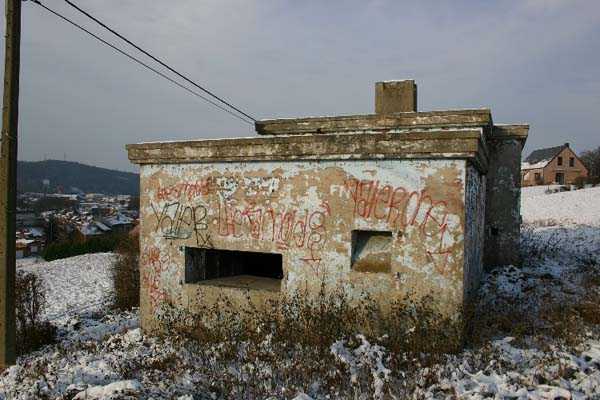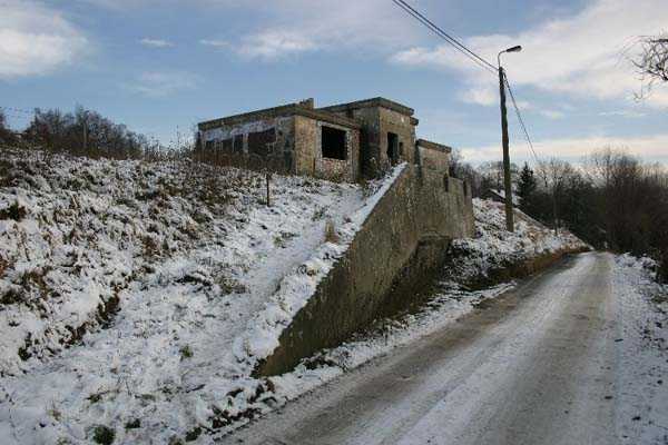 Fortified Position of Liège, third line of resistance, permanent posts. Shelter PP9A, 95 m/asl, located on Rue des Haisses in Chênée. In 2014 it contained no more metallic elements except a closing flap of a grenade launcher chute. It is now (2026) completely restored, fitted with windows, fenced, and its access ramp has been paved with clinkers. The left part has been fitted with a two-leaf garage door. We do not know what it is intended for or who the owner is.