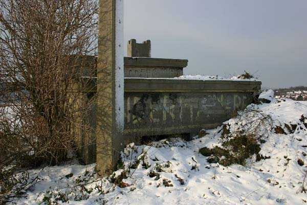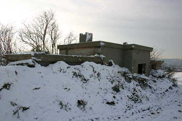 Fortified Position of Liège, third line of resistance, permanent posts. Shelter PP9B, 129 m/asl, located on Rue Aux Piedroux in Chênée, 265 m from its immediate neighbor, shelter PP9A. Structurally intact, it is now stripped of all its metallic elements.