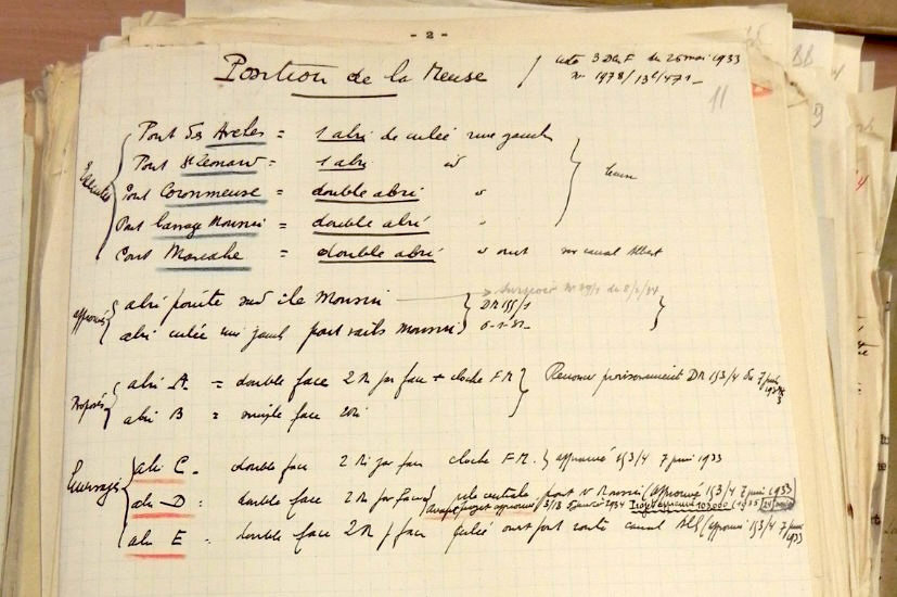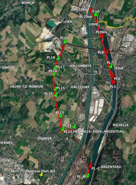Fortified Position of Liège, fourth line of resistance, interval shelters. Pontisse-Lixhe interval or Meuse line. Various documents from the Royal Army Museum place this line in different defensive sectors. An undated document groups shelters 5 to 10 in the first interval line, which is not inconsistent as it is located directly behind the Visé bridgehead. This document also places shelters 11 to 20 in the second defense line. A document dated 1934, however, places shelters 9 and 10 in the FPL 4 (Fortified Position of Liège). Our late friend Emile Coenen, Vernier Frank and the website www.belgiumwwii.be place them in FPL4. We will also consider these Meuse defenses as part of FPL4. This line comprises 20 shelters numbered 5 to 20 + B and C, distributed over two lines to ensure defense in depth. These are neither type PA shelters, nor FPL2 type shelters, nor even counter-assault shelters, but more often riverside shelters firing in one or two directions and equipped with machine gun embrasures. 13 of these shelters have survived, 7 are destroyed.
