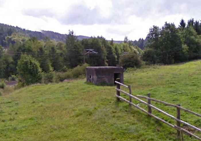 Fortifications belges de la deuxième guerre mondiale, position fortifiée de Liège, première ligne de résistance, extrémité sud, position avancée de Trois-Ponts / Salm, abri S1 de type PA modèle C, 323 m/alt, 3 hommes, 1 mitrailleuse sur affût Chardôme. Situé entre la voie de chemin de fer et la rue de Raines vers le lieu-dit Bécharprez, il défend un secteur sud-sud-est couvrant la voie ferrée et partiellement la route N68 vers l'Hostellerie des Linaigrettes. Dépouillé de ses éléments métalliques, il est structurellement en bon état.