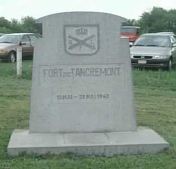 Během dnů 6. a 7. května jsme v Rue de Tancrémont, PFL 1, přijali návštěvu asi čtyřiceti českých návštěvníků, kteří přijeli, aby viděli čtyři moderní tvrze opevněné pozice Lutychu. Také jsme se vydali do tvrze Pepinster-Tancrémont. Mírně zatažená obloha poskytovala ideální osvětlení pro fotografování různých objektů díla, a my jsme si to neodpírali. Následující stránky vám poskytnou přehled toho, co jsme viděli. Při příchodu z Lutychu, přes Sprimont a Banneux, nás vítá socha sv. Barbory vysoká asi dva metry na podstavci vysokém 80 centimetrů na pravé straně silnice. Nachází se v zeleném rámu a u jejích nohou hoří plamen. Hned poté, na stejné straně, dvě traverzy zasazené do betonových patek a opatřené nápisem 'Vojenský prostor, vstup zakázán', vymezují vstup do bývalých mírových kasáren zničených muži tvrze 10. května 1940, aby uvolnili palebné pole a nemohly sloužit jako úkryt nepříteli. Při vstupu do tohoto zakázaného prostoru objevíme některé pozůstatky, jejichž původ je dosti nejasný, a betonové základy mírové strážnice. Suterén této budovy je přístupný betonovým schodištěm a ukrývá odpojovače elektrického napájení tvrze. Toto napájení je stále v provozu a ospravedlňuje, že přístup je zakázán. Parkovací plocha umožňuje zaparkovat asi stovku aut a několik autobusů 20 metrů od přístupového hrdla k suchému příkopu díla. Památník bývalým bojovníkům nese data 10. květen 40 a 29. květen 40. 10. květen 40 odpovídá vstupu německých vojsk na území Belgie. 28. května 40 Belgie složí zbraně, ale tvrz Tancrémont pokračovala v odporu až do následujícího dne, což způsobilo vážné potíže německým důstojníkům odpovědným za její zničení. Hned za tímto památníkem prochází 30 metrů dlouhá rampa přehrazená silnou kovovou mříží pod svahem kontreskarpy, aby poskytla přístup k (více méně) suchému příkopu, který obklopuje centrální masiv díla. Přístupové hrdlo je bráněno střílnou pro kulomet Maxim na dvojité lafetě viditelnou na jedné ze spodních fotografií.