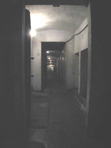 Fortifications belges de la deuxième guerre mondiale, position fortifiée de Liège, première ligne de résistance, fort de Tancrémont. Le bloc II d'artillerie est équipé d'une tourelle escamotable (éclipsable/rétractable) pour 2 canons de 75 mm avec une portée d'environ 11 kilomètres. Chaque canon est doté de 2000 obus. Les tirs sont commandés par le bureau de tir mais peuvent également se faire à vue par le regard de visée directe qui se trouve entre les deux canons. La photo permet de voir que le manteau de la tourelle a été aminci d'environ 5 centimètres. La diminution de poids ainsi obtenue rend cependant la tourelle plus vulnérable. Le bloc est de construction typique. On le retrouve sur le fort d'Aubin-Neufchâteau avec le manteau non aminci et sur le fort de Battice avec un manteau non aminci de 5 centimètres. Les blocs-tourelles (coupole nord et coupole sud) du fort d'Eben-Emael ont également un manteau aminci mais de 10 centimètres et offrent d'autres particularités comme une sortie d'infanterie ou des embrasures permettant de flanquer les fossés de l'ouvrage. Le bloc dispose également de deux cloches pour une mitrailleuse double Maxim montée sur affût réversible. Les cloches servent à la défense rapprochée de l'ouvrage. Actuellement le mouvement de levée et éclipse a pu être restauré. Il est donc à nouveau possible de lever et de descendre la tourelle. Les deux canons ont également été remis en état de marche et des tirs à blanc sont exécutés lors de chaque commémoration du 10 mai 1940. Les mouvements de rotation sont encore bloqués et demanderont encore de nombreuses heures de travail en nettoyage et en graissage des pièces mécaniques.