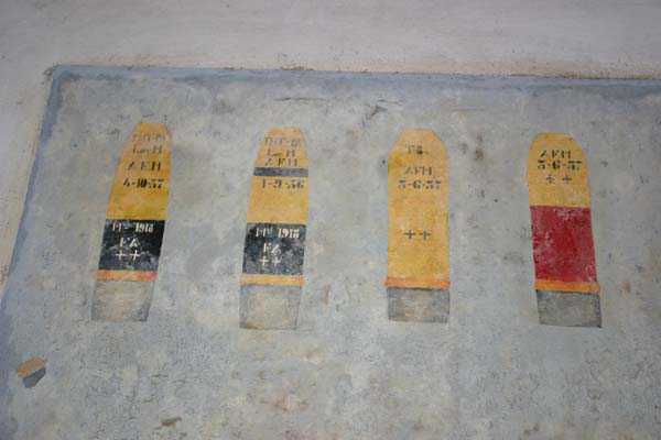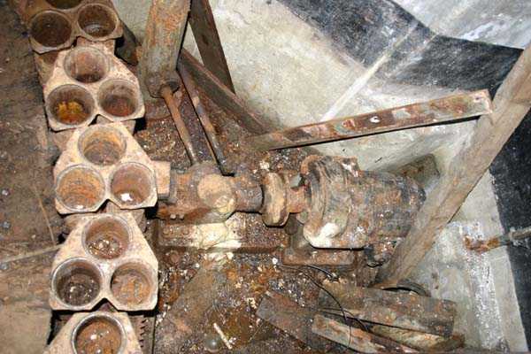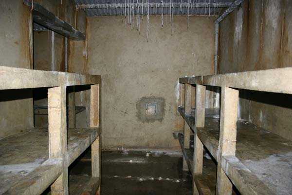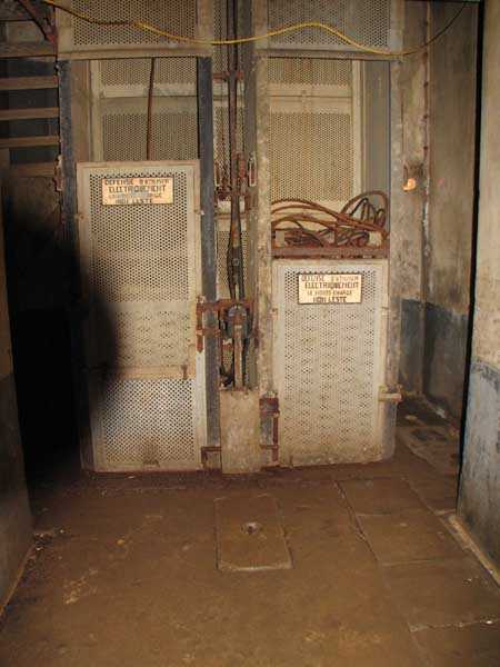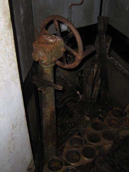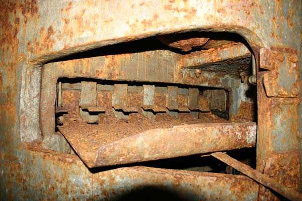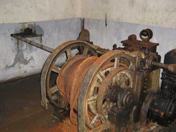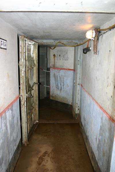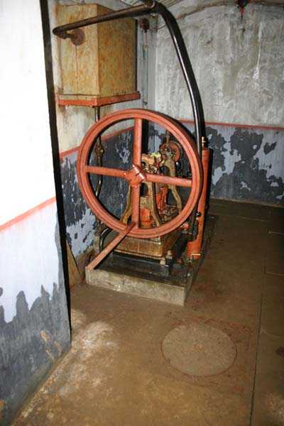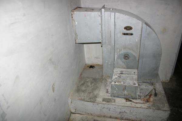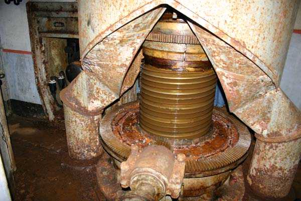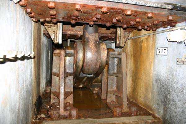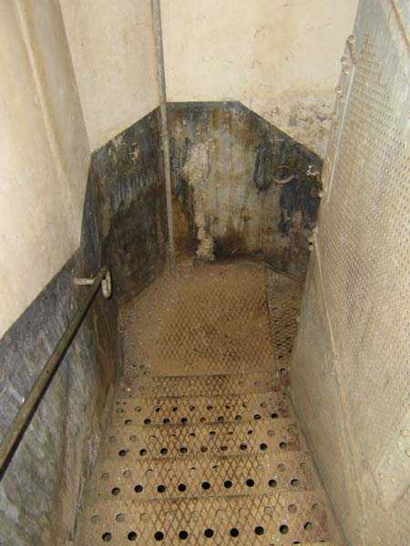 Belgische Befestigungen des Zweiten Weltkriegs, befestigte Stellung Lüttich, erste Widerstandslinie, Fort von Tancrémont. Der Artillerieblock II ist mit einem einziehbaren/versenkbaren Geschützturm für 2 Geschütze 75 mm mit einer Reichweite von etwa 11 Kilometern ausgestattet. Jedes Geschütz ist mit 2000 Geschossen ausgestattet. Das Feuer wird durch die Feuerleitstelle kommandiert, kann aber auch direkt durch das zwischen den beiden Geschützen befindliche direkte Zielvisier erfolgen. Das Foto zeigt, dass der Mantel des Turms um etwa 5 Zentimeter verdünnt wurde. Die dadurch erreichte Gewichtsreduzierung macht den Turm jedoch verwundbarer. Der Block ist typisch konstruiert. Man findet ihn im Fort von Aubin-Neufchâteau mit unverdünntem Mantel und im Fort von Battice mit einem unverdünnten Mantel von 5 Zentimetern. Die Turmblöcke (Nordkuppel und Südkuppel) des Forts Eben-Emael haben ebenfalls einen verdünnten Mantel, aber von 10 Zentimetern, und bieten andere Besonderheiten wie einen Infanterieausgang oder Scharten zur Flankierung der Gräben des Werks. Der Block verfügt außerdem über zwei Glocken für ein Doppel-Maschinengewehr Maxim auf schwenkbarer Lafette. Die Glocken dienen der Nahverteidigung des Werks. Derzeit konnte der Hebe- und Senkmechanismus restauriert werden. Es ist somit wieder möglich, den Turm zu heben und zu senken. Die beiden Geschütze wurden ebenfalls funktionsfähig gemacht, und bei jeder Gedenkfeier am 10. Mai 1940 werden Platzpatronenschüsse abgefeuert. Die Drehbewegungen sind noch blockiert und werden noch viele Stunden Arbeit in Reinigung und Schmierung der mechanischen Teile erfordern.