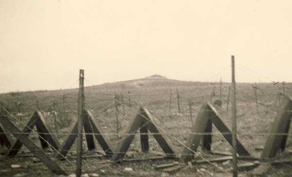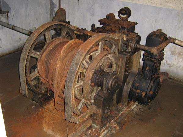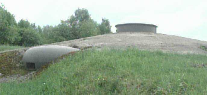 Belgian fortifications of the Second World War, fortified position of Liège, first line of resistance, fort of Tancrémont. The artillery block II is equipped with a retractable/disappearing gun turret for 2 guns of 75 mm with a range of about 11 kilometres. Each gun is provided with 2000 shells. Firing is commanded by the fire control room but can also be done by direct sight through the direct sighting scope located between the two guns. The photo shows that the turret's mantle has been thinned by about 5 centimetres. The weight reduction thus obtained, however, makes the turret more vulnerable. The block is of typical construction. It is found on the fort of Aubin-Neufchâteau with an unthinned mantle and on the fort of Battice with an unthinned mantle of 5 centimetres. The turret blocks (north cupola and south cupola) of Fort Eben-Emael also have a thinned mantle but of 10 centimetres and offer other particularities such as an infantry exit or embrasures allowing to flank the ditches of the work. The block also has two cupolas for a twin Maxim machine gun mounted on a reversible mount. The cupolas serve for the close defence of the work. Currently, the raising and lowering movement has been restored. It is therefore possible again to raise and lower the turret. The two guns have also been made operational and blank shots are fired during each commemoration of 10 May 1940. The rotation movements are still blocked and will require many more hours of work in cleaning and greasing the mechanical parts.
