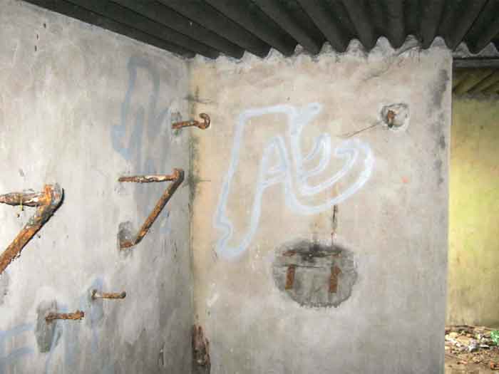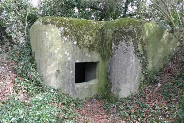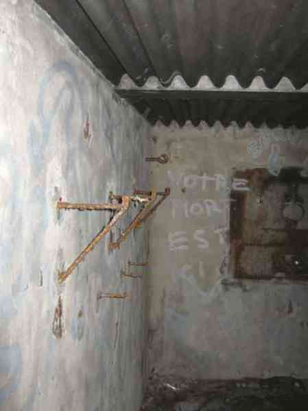 Belgian fortifications from the Second World War, fortified position of Liège, first line of resistance, interval Vesdre-Manaihant. VM 12 located near the crossroads of Rue Saint Germain and the Wegnez-Soiron road. Its embrasure enfilades the direction of Wegnez. It still has its concrete fence posts and its living hedge. Access possible. Good condition outside and inside despite some tags. It has an FRC mount.