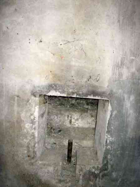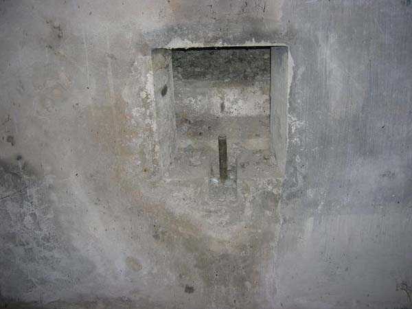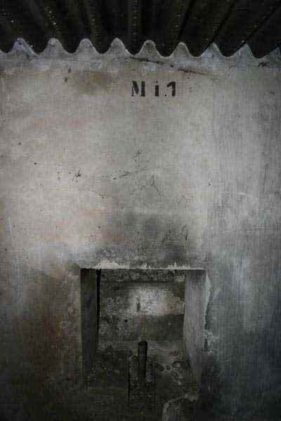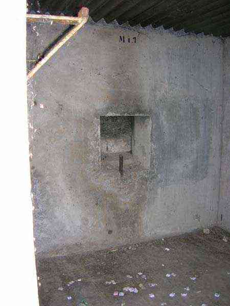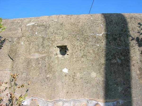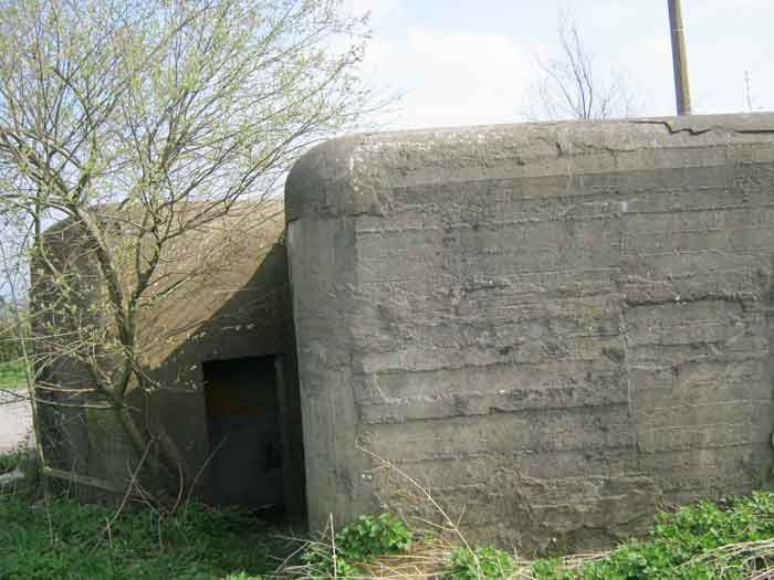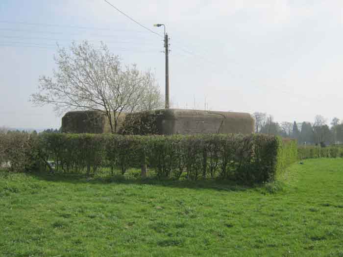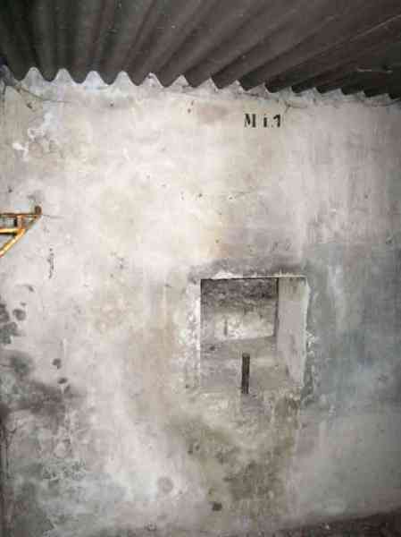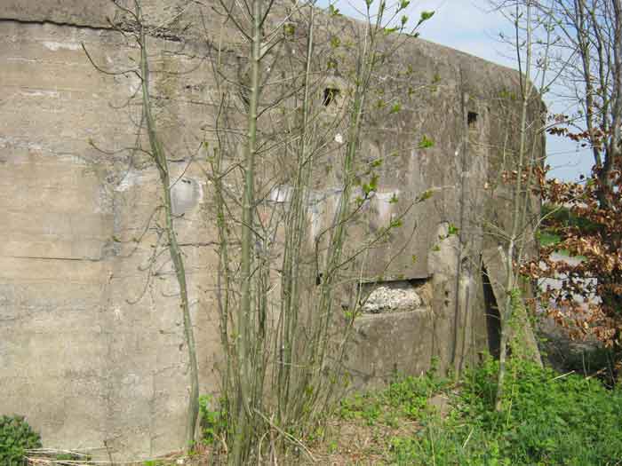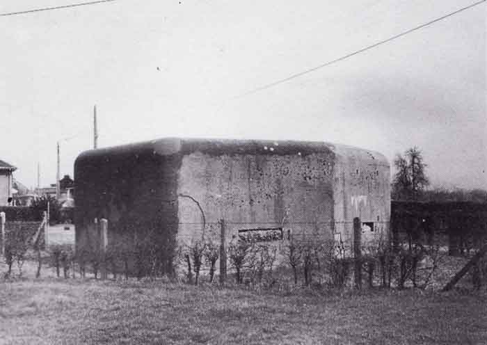 Belgian fortifications from the Second World War, fortified position of Liège, first line of resistance, interval Vesdre-Manaihant. VM 14 structure with two embrasures, one for an FRC mount and one for a Chardôme mount which has disappeared. Located in Haute Tribomont at the crossroads of Voie Creuhy. One firing axis covers Rue Tribomont with the FRC mount, the other, with the Chardôme mount, covered the south of Sclassin. The exterior and interior are in good condition except for the absence of a few cement rendering plates. It still has a few fence posts. As for the hedge, it is hard to tell, in the old photo it is very low, unless the former occupant maintained it. The embrasures are walled up. The entrance is easily accessible. The interior is almost complete, the oak trays for ammunition have disappeared. VM 14 was defended by 3 grenade launching chutes. Above the embrasure, the markings Mi 1 (Chardôme) and Mi 2 (FRC) still appear and at shelf height a numbering from 1 to 3 in Roman numerals.