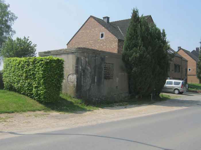 Belgische Festungen aus dem Zweiten Weltkrieg, verstärkte Stellung Lüttich, erste Widerstandslinie, Intervall Vesdre-Manaihant. VM 25, gelegen am Rand der Avenue Henri Massin an der südöstlichen Ecke des ehemaligen Fußballfeldes, jedoch auf der anderen Straßenseite. Es bestrich die von Verviers kommende Straße im Richten. Als Wohnhaus getarnt, besitzt es ein falsches Fenster und ein falsches Flachdach. Die Schießscharte mit Schwenkverschluss ist geschlossen. Das Werk ist in Privatbesitz und dient seinem Eigentümer als Schuppen. Der äußere und innere Zustand ist gut. Die FRC-Lafette ist in sehr gutem Zustand, es fehlt nur das Rad, um sie funktionsfähig zu machen. Das Innere ist vollständig. Zwei Granatwurfschächte verteidigten die Umgebung. Es gibt keine Zaunpfähle mehr.
