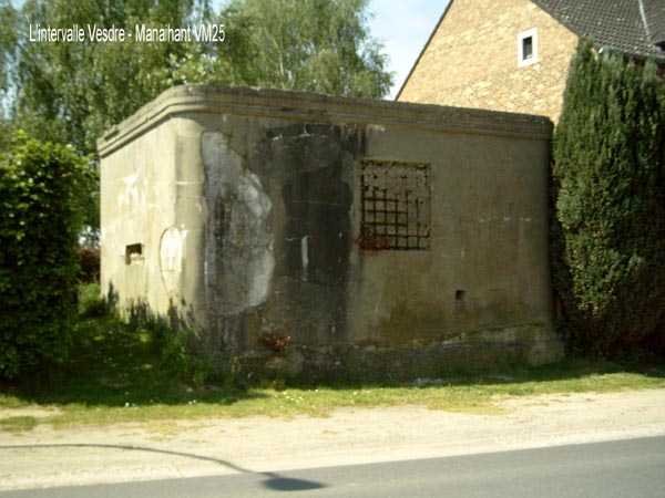 Belgické opevnění z druhé světové války, opevněná pozice Lutych, první linie odporu, interval Vesdre-Manaihant. VM 25, nacházející se na okraji Avenue Henri Massin v jihovýchodním rohu bývalého fotbalového hřiště, ale na druhé straně silnice. Postřeloval silnici přicházející z Verviers. Zakamuflovaný jako obytná budova má falešné okno a falešnou plochou střechu. Střílna s otočným uzávěrem je zavřená. Objekt je v soukromém vlastnictví a slouží svému majiteli jako kůlna. Venkovní i vnitřní stav je dobrý. Lafeta FRC je ve velmi dobrém stavu, chybí pouze kolo, aby byla funkční. Interiér je kompletní. Dva granátové výmety bránily okolí. Nezůstaly žádné plotové kůly.