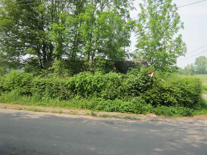 Belgian fortifications from the Second World War, fortified position of Liège, first line of resistance, interval Vesdre-Manaihant. VM 32 is located on the road from Grand-Rechain to Petit-Rechain at the level of the Tourelles. Its firing axis covers it towards the east. Camouflaged as a dwelling, like VM 25, it has a false window and a false flat roof. The embrasure with a pivoting shutter is closed. It serves as a shelter for bats. A metal door prevents access and the description of the interior.