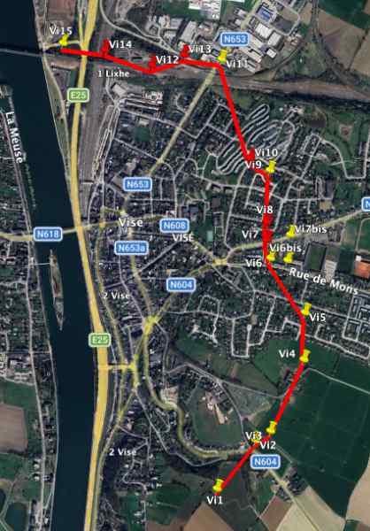 Befestigte Stellung Lüttich, dritte Widerstandslinie, Brückenköpfe. Der Brückenkopf Visé befindet sich in der gleichnamigen Gemeinde und am rechten Maasufer vor der Linie PL (Pontisse-Lixhe). Er besteht aus 13 leichten Unterständen und 4 Gegenstoßunterständen, insgesamt 17 Unterstände, von denen 6 im Jahr 2026 zerstört sind. Ihre Nummerierung von Vi1 bis Vi15 + Vi6bis und Vi7bis erfolgt gegen den Uhrzeigersinn. Zwei der Gegenstoßunterstände sind einem verstärkten Unterstand vom Typ PA vorgelagert, und allen war etwa hundert Meter vorgelagert eine Sperre aus Seilen und eine Sperre aus Cointet-Barrieren, von denen zahlreiche Verankerungspfähle noch vorhanden sind.