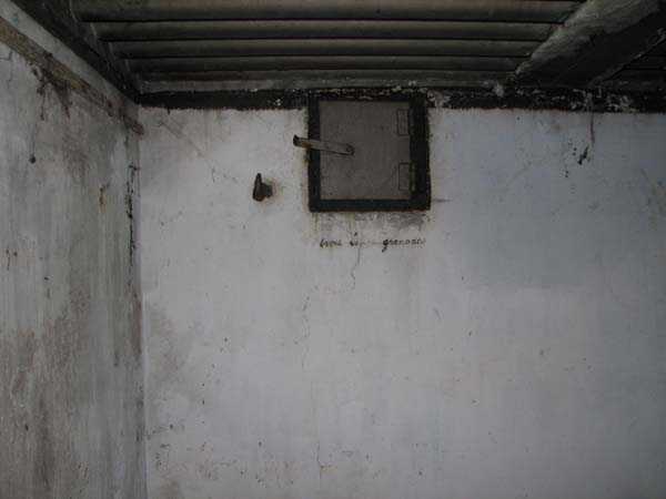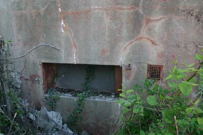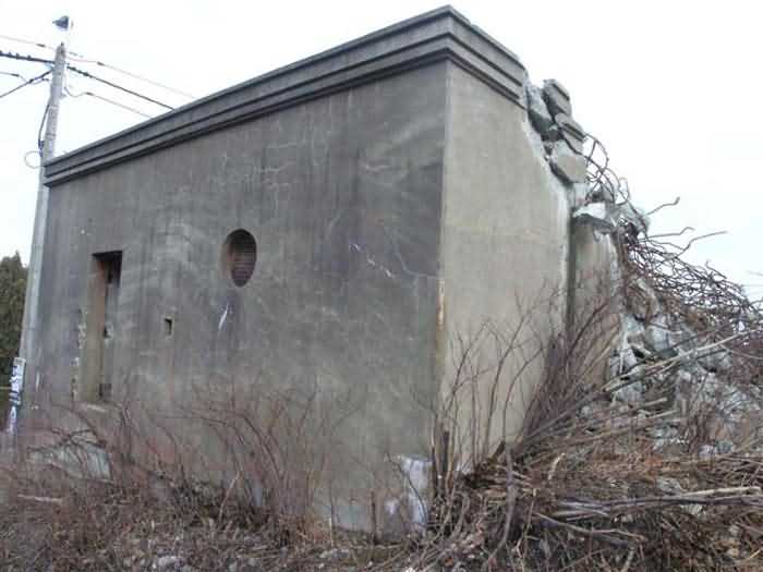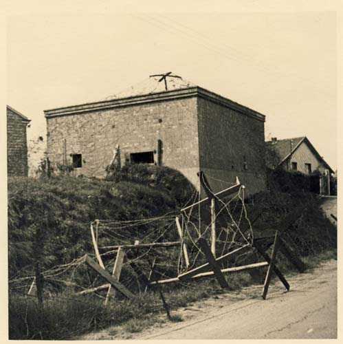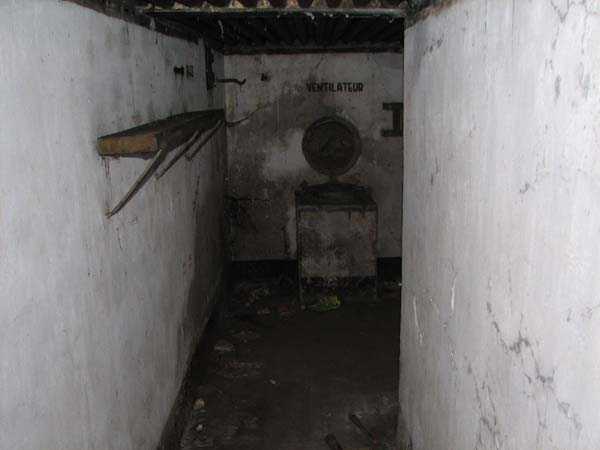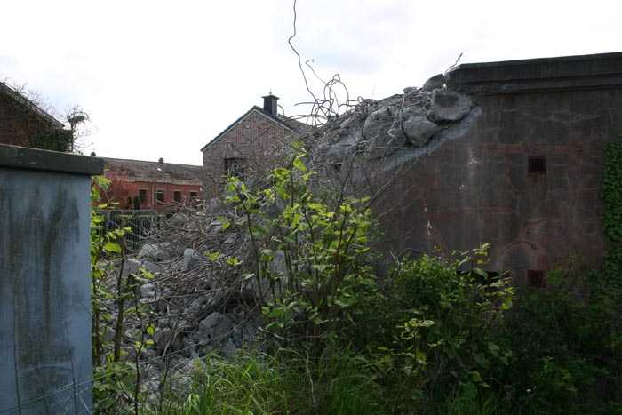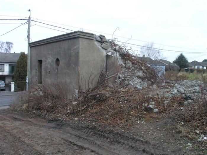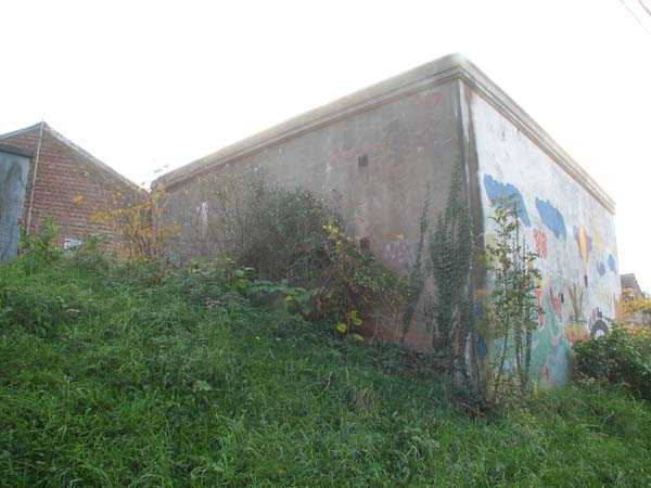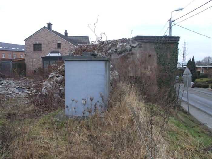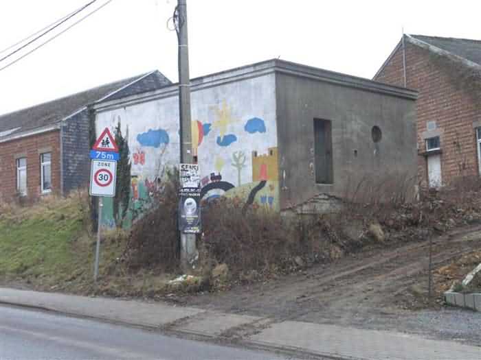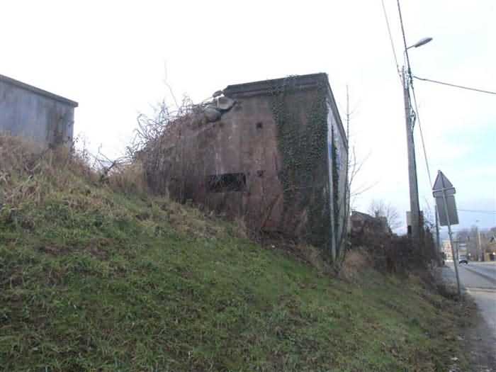 Fortified Position of Liège, third line of resistance, bridgeheads, Visé bridgehead, shelter Vi7, 107 m/asl. Located on the left side of Rue de Berneau going towards the center of Visé, at the northwest corner of the Lieutenant Jacquemin barracks, now the EPESE (Primary Special Education School), Visé site. It is located 80 m west of shelter Vi7bis and 180 m west of the anti-tank obstacle still equipped with its anchor posts. It is a single-level counter-assault shelter. It has an embrasure for a 47 mm anti-tank gun and another for a 30 cm searchlight, both facing east. It also has two grenade launcher chutes to defend its immediate surroundings and a pseudo concrete cornice to imitate a residential outbuilding in an urban environment. It had no cupola for a lookout and light machine gun. The exterior of the shelter does not seem to have received any particular impacts. Although long left open, it has preserved practically all its metallic elements, including the P2 louvered door, the consoles for the shelves with their shelf, the L2 hooks for personal equipment and the L3 hooks for individual weapons, the flaps of the grenade launcher chutes and part of the ventilation. Missing: the hand fan, the 30 cm searchlight and obviously the weapons. Its systematic demolition began in 2009. The last rubble was removed in 2011. Apart from the fact that it attracted fortification tourists, we did not see the point of its demolition.