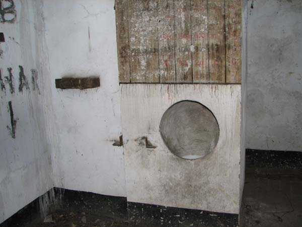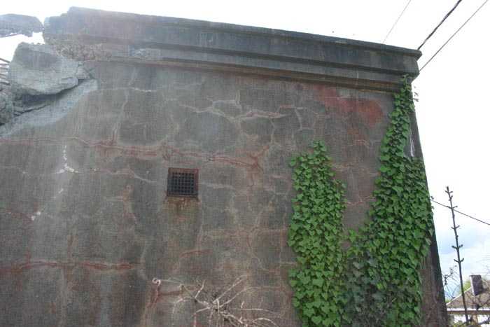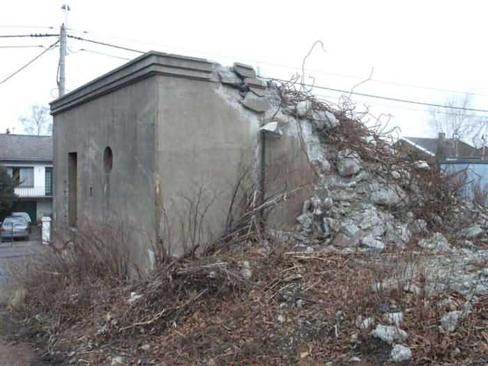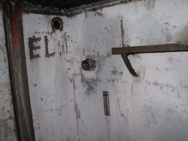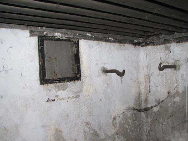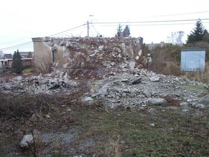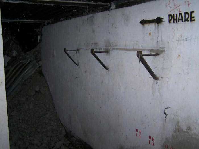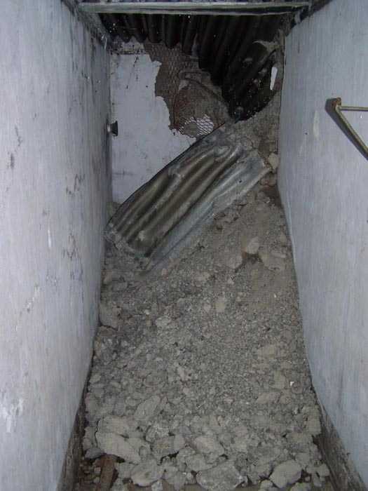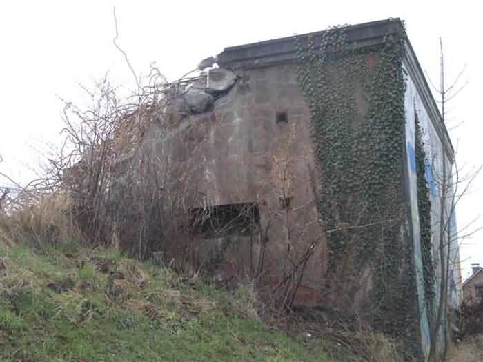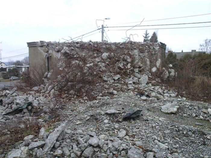 Fortified Position of Liège, third line of resistance, bridgeheads, Visé bridgehead, shelter Vi7, 107 m/asl. Located on the left side of Rue de Berneau going towards the center of Visé, at the northwest corner of the Lieutenant Jacquemin barracks, now the EPESE (Primary Special Education School), Visé site. It is located 80 m west of shelter Vi7bis and 180 m west of the anti-tank obstacle still equipped with its anchor posts. It is a single-level counter-assault shelter. It has an embrasure for a 47 mm anti-tank gun and another for a 30 cm searchlight, both facing east. It also has two grenade launcher chutes to defend its immediate surroundings and a pseudo concrete cornice to imitate a residential outbuilding in an urban environment. It had no cupola for a lookout and light machine gun. The exterior of the shelter does not seem to have received any particular impacts. Although long left open, it has preserved practically all its metallic elements, including the P2 louvered door, the consoles for the shelves with their shelf, the L2 hooks for personal equipment and the L3 hooks for individual weapons, the flaps of the grenade launcher chutes and part of the ventilation. Missing: the hand fan, the 30 cm searchlight and obviously the weapons. Its systematic demolition began in 2009. The last rubble was removed in 2011. Apart from the fact that it attracted fortification tourists, we did not see the point of its demolition.