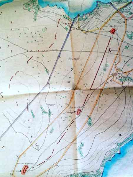 Diego-Suarez. Front de terre. La presqu’île d’Andrakaka est défendue par une ligne de 3 ouvrages, orientée NE-SW, s’étendant sur 5 kilomètres, et dont la mission est la défense des installations du cap Diego et du port, face à un ennemi arrivant de l’ouest. Les ouvrages se flanquent mutuellement, et sont reliés par une profonde tranchée, disparue de nos jours. Ils sont appuyés par la batterie de 155 L Mle 1877 des Caïmans, située à Antsirane, et ravitaillés en munitions à partir du magasin de secteur, situé entre les ouvrages B et C. Les ouvrages sont désarmés pendant la Première Guerre mondiale, et le matériel renvoyé vers la métropole. Landfront. Die Halbinsel Andrakaka wird durch eine Linie von 3 Werken verteidigt, die in nordöstlich-südwestlicher Richtung verläuft, sich über 5 Kilometer erstreckt und deren Aufgabe die Verteidigung der Anlagen von Kap Diego und des Hafens gegenüber einem von Westen kommenden Feind ist. Die Werke flankieren sich gegenseitig und sind durch einen tiefen Graben verbunden, der heute verschwunden ist. Sie werden von der 155-mm-Langrohrkanonen-Batterie Mle 1877 der Caïmans in Antsirane unterstützt und mit Munition aus dem Sektormagazin versorgt, das sich zwischen den Werken B und C befindet. Die Werke wurden während des Ersten Weltkriegs außer Dienst gestellt und das Material ins Mutterland zurückgeschickt. Landfront. Het schiereiland Andrakaka wordt verdedigd door een linie van 3 werken, georiënteerd NO-ZW, zich uitstrekkend over 5 kilometer, en met als taak de verdediging van de installaties van Kaap Diego en de haven tegen een vijand die uit het westen komt. De werken flankeren elkaar, en zijn verbonden door een diepe loopgraaf, tegenwoordig verdwenen. Zij worden ondersteund door de batterij van 155 L Mle 1877 der Caïmans, gelegen te Antsirane, en bevoorraad met munitie vanuit het sectormagazijn, gelegen tussen de werken B en C. De werken worden tijdens de Eerste Wereldoorlog ontwapend, en het materieel teruggezonden naar het moederland. Land front. The Andrakaka peninsula is defended by a line of 3 works, oriented NE-SW, extending over 5 kilometres, and whose mission is the defence of the Cape Diego installations and the port, against an enemy arriving from the west. The works flank each other, and are connected by a deep trench, now disappeared. They are supported by the 155 L Mle 1877 battery of the Caïmans, located at Antsirane, and supplied with ammunition from the sector magazine, located between works B and C. The works are disarmed during the First World War, and the equipment sent back to metropolitan France. Pozemní fronta. Poloostrov Andrakaka je bráněn linií 3 děl, orientovanou SV-JZ, rozkládající se na 5 kilometrů, a jejímž úkolem je obrana zařízení na mysu Diego a přístavu proti nepříteli přicházejícímu ze západu. Díla se navzájem flankují a jsou propojena hlubokým zákopem, dnes již zmizelým. Jsou podporována baterií 155 L vz. 1877 Caïmans, nacházející se v Antsirane, a zásobována municí ze sektorového skladu, který se nachází mezi díly B a C. Díla jsou během první světové války odzbrojena a výzbroj odeslána zpět do metropole. © JJM 25/03/2026