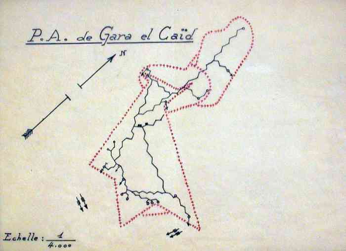 Mareth. Ce point d'appui ne comprend pas d’ouvrage fortifié. La section de grand flanquement GF3 était en batterie entre ce point d'appui et le point d’appui P10. Un canon antichar de 47 G constituait l’essentiel de son armement. Dieser Stützpunkt umfasst kein befestigtes Werk. Die Sektion für große Flankierung GF3 war in Stellung zwischen diesem Stützpunkt und dem Stützpunkt P10. Eine 47-mm-Panzerabwehrkanone G bildete den Hauptteil seiner Bewaffnung. Dit steunpunt omvat geen versterkt werk. De sectie voor grote flankering GF3 was in batterij tussen dit steunpunt en het steunpunt P10. Een 47 mm-antitankkanon G vormde het voornaamste deel van zijn bewapening. This strongpoint does not comprise any fortified work. The large flanking section GF3 was in battery between this strongpoint and strongpoint P10. A 47 G anti-tank gun constituted the bulk of its armament. Tento opěrný bod nezahrnuje žádné opevněné dílo. Sekce pro velké flankování GF3 byla v baterii mezi tímto opěrným bodem a opěrným bodem P10. Hlavní část jeho výzbroje tvořil 47mm protitankový kanón G. © JJM 05/03/2026