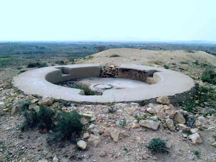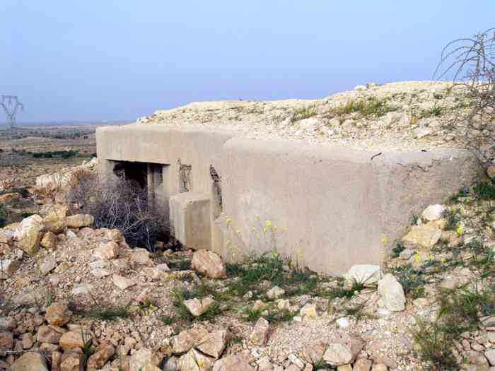 Mareth. Cette position comprend un poste de commandement de bataillon et deux plateformes pour canon de 47 M. Ces éléments sont toujours en place. Un canon de 47 G complétait son armement antichar. Diese Stellung umfasst einen Bataillonsgefechtsstand und zwei Plattformen für 47-mm-Kanone M. Diese Elemente sind noch vorhanden. Eine 47-mm-Kanone G vervollständigte ihre Panzerabwehrbewaffnung. Deze positie omvat een bataljonscommandopost en twee platformen voor 47 mm-kanon M. Deze elementen zijn nog aanwezig. Een 47 mm-kanon G vulde haar antitankbewapening aan. This position comprises a battalion command post and two platforms for 47 M gun. These elements are still in place. A 47 G gun completed its anti-tank armament. Tato pozice zahrnuje praporové velitelské stanoviště a dvě platformy pro kanón ráže 47 M. Tyto prvky jsou stále na místě. Její protitankovou výzbroj doplňoval kanón ráže 47 G. © JJM 05/03/2026