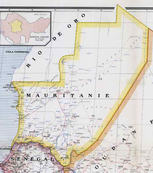 AOF. Situé à 680 kilomètres au nord de Dakar, Port-Étienne (Nouadhibou) en est dépendant pour tout ce qui concerne son ravitaillement et sa logistique, matériels et munitions. Le trafic portuaire est essentiellement lié à l’exportation du minerai de fer de la mine de Zouerate. C’est le seul point de la côte mauritanienne qui mérite d’être défendu. 680 Kilometer nördlich von Dakar gelegen, ist Port-Étienne (Nouadhibou) für seine Versorgung und Logistik, Material und Munition, von diesem abhängig. Der Hafenverkehr ist hauptsächlich mit dem Export von Eisenerz aus der Mine von Zouerate verbunden. Es ist der einzige Punkt der mauretanischen Küste, der verteidigt zu werden verdient. Gelegen op 680 kilometer ten noorden van Dakar, is Port-Étienne (Nouadhibou) daarvan afhankelijk voor alles wat betreft zijn bevoorrading en logistiek, materieel en munitie. Het havenverkeer is hoofdzakelijk verbonden met de export van ijzererts uit de mijn van Zouerate. Het is het enige punt van de Mauritiaanse kust dat verdedigd te worden verdient. Located 680 kilometres north of Dakar, Port-Étienne (Nouadhibou) is dependent on it for all its supply and logistics, equipment and ammunition. Port traffic is essentially linked to the export of iron ore from the Zouerate mine. It is the only point on the Mauritanian coast that deserves to be defended. Nachází se 680 kilometrů severně od Dakaru, Port-Étienne (Nouadhibou) je na něm závislý, pokud jde o veškeré jeho zásobování a logistiku, materiál a munici. Přístavní provoz je v zásadě spojen s vývozem železné rudy z dolu Zouerate. Je to jediný bod mauritánského pobřeží, který stojí za to bránit. © JJM 12/03/2026