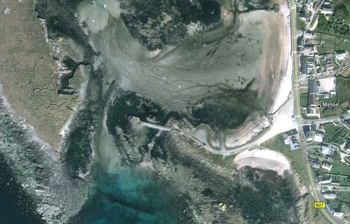 Dept 29 (Finistère), NNE of Brest. Battery found mentioned only once in the bibliography. We only know that it was decommissioned by the law of May 27, 1889. Another document tells us that the Coastal Defense Commission, in its meetings from May 18 to June 1, 1876, decided to decommission the batteries of Kervigon (Kervigorn - left bank of the Aber) and Portz-Argentan (not shown on the 1/100,000 map) at the mouth of the Aber Benoît. Should we deduce that the Aber Benoît battery is a third distinct one? The Aber Benoît runs parallel to the Aber Wrac'h, approximately 3,500 m south of the latter.