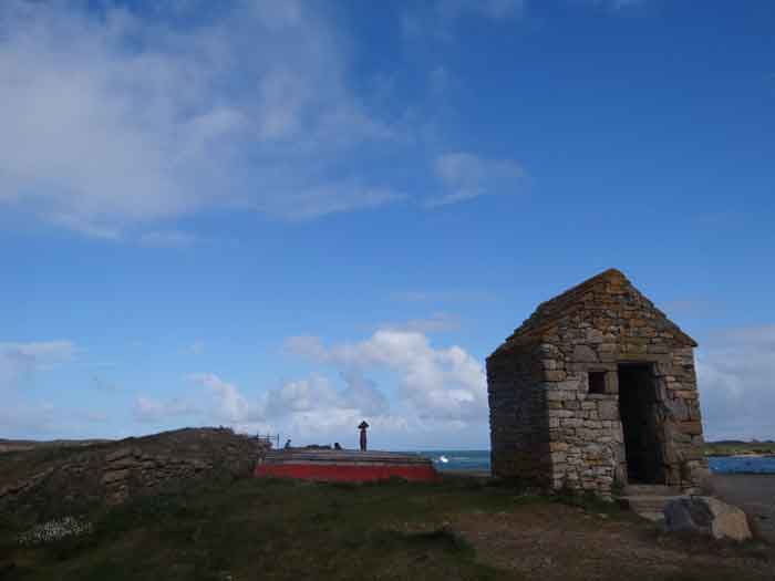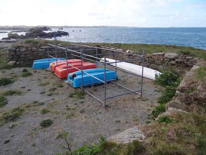Dept 29 (Finistère), nordöstlich von Brest. Die gefundene Batterie wird in der Bibliographie nur einmal erwähnt. Wir wissen nur, dass sie durch Gesetz vom 27. Mai 1889 außer Dienst gestellt wurde. Ein anderes Dokument besagt, dass die Küstenverteidigungskommission in ihren Sitzungen vom 18. Mai bis 1. Juni 1876 beschloss, die Batterien von Kervigon (Kervigorn – linkes Ufer des Aber) und Portz-Argentan (nicht auf der Karte im Maßstab 1/100.000 verzeichnet) an der Mündung des Aber Benoît außer Dienst zu stellen. Dürfen wir daraus schließen, dass es sich bei der Batterie des Aber Benoît um eine dritte, eigenständige Batterie handelt? Der Aber Benoît verläuft parallel zum Aber Wrac'h, etwa 3.500 m südlich von diesem.