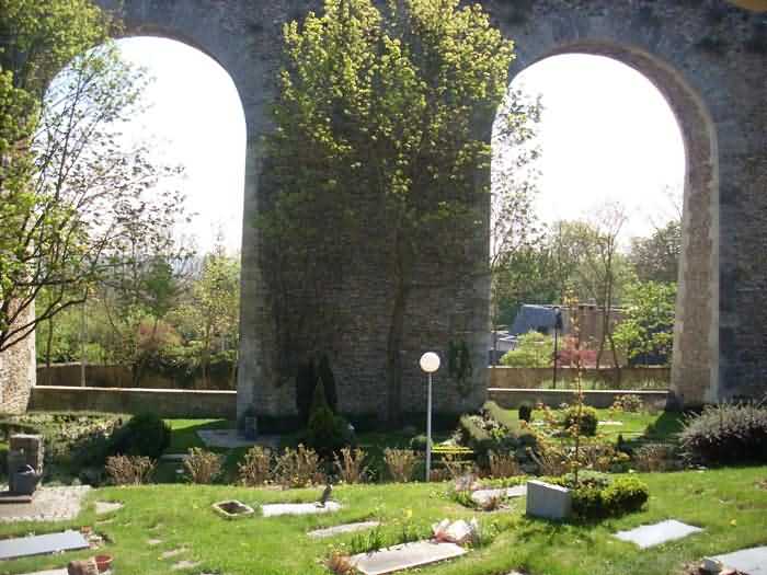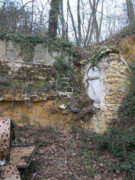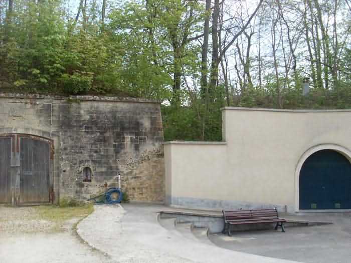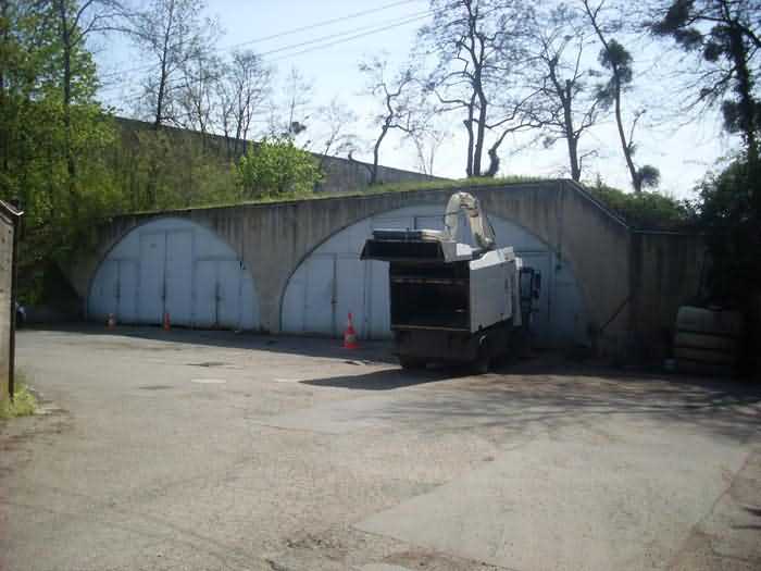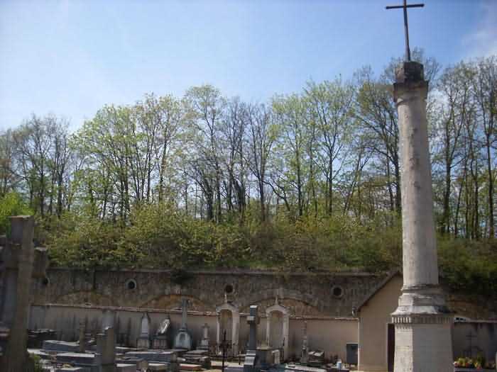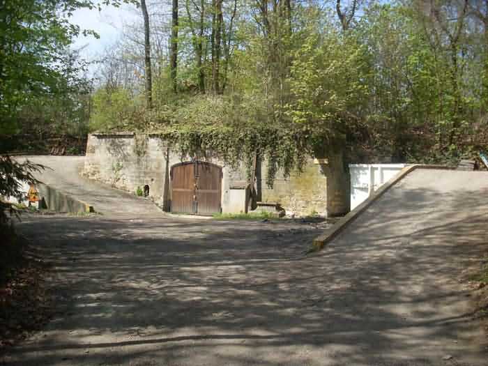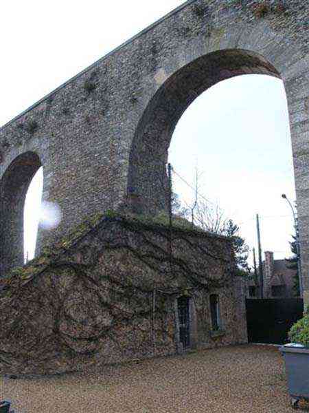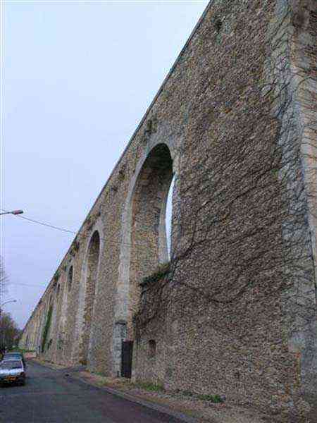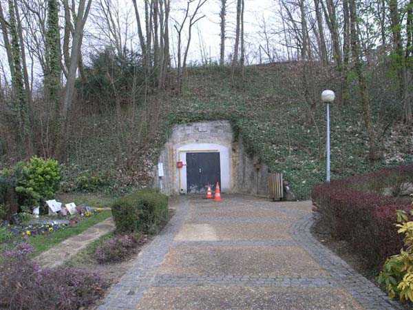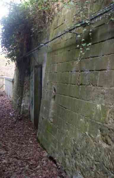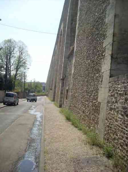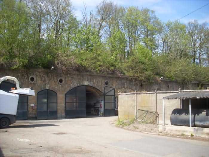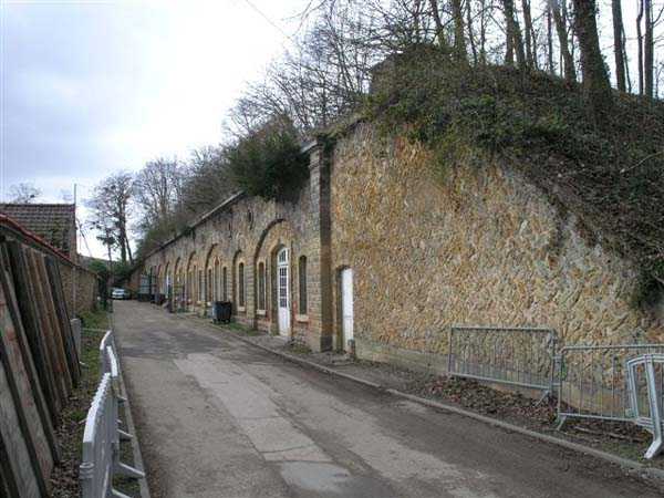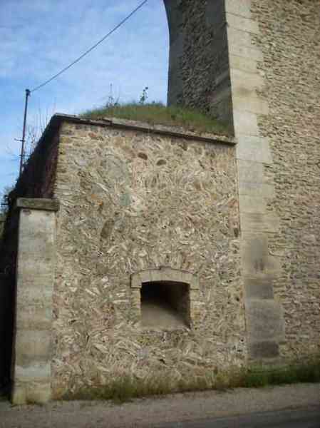 Fortress Paris, west of the city, 1879-1880. Masonry annex to the redoubt of the Trou d'Enfer. 164 men, 18 guns. Battery with the particularity of being established around a cemetery, that of Louveciennes. The gorge is marked by the pillars of the arches of an aqueduct and the entrance rests on one of them. The battery takes the form of an irregular pentagon and only fronts II-III and III-IV seem to have been defended, where necessary, by a double caponier. The barracks are aligned along the western flank of the cemetery. It comprises eight small bays on a single level. On its left, it is crossed by a covered passage giving access to the southern limit of the rue du rempart, which goes around the barracks and cemetery along seven sleepers, mostly of the 1879 model and coated. This line of sleepers abuts, not far from salient V, on the mass of the powder magazine. The perimeter of the battery was partially destroyed in 1972. Currently (03/2007) the municipality has installed a waste disposal site there and the barracks is occupied by services and a small theater troupe. The ditch is completely filled in and the powder magazine serves as a boiler room. This battery is worth the trip due to the originality of its environment. The initial entrance, with guardhouse, opens between two piers of the aqueduct. At the time, the cemetery was only located on the right where older graves (1828, 1842, etc.) can be found before spilling out to the left, but also beyond the powder magazine, probably after the decommissioning of the battery. The Louveciennes aqueduct, built between 1681 and 1685, is 640 meters long and has 36 arches, each 23 meters high. Powered by the famous Marly machine pumping water from the Seine, it is hard to believe that the sole purpose of such a gigantic structure was to guarantee the correct pressure and height for the water jets in the parks of the châteaux of Marly and, later, Versailles. The cemetery is home to some famous figures, such as Emmanuel Frémiet, the sculptor who created the statue of Joan of Arc in Paris and the Archangel Saint Michael on Mont Saint-Michel.