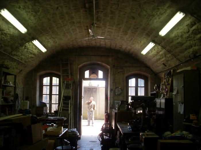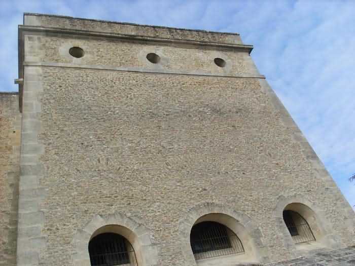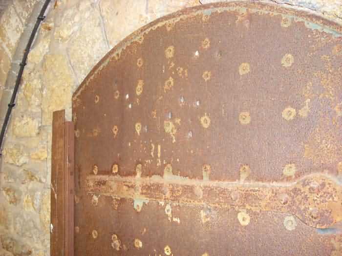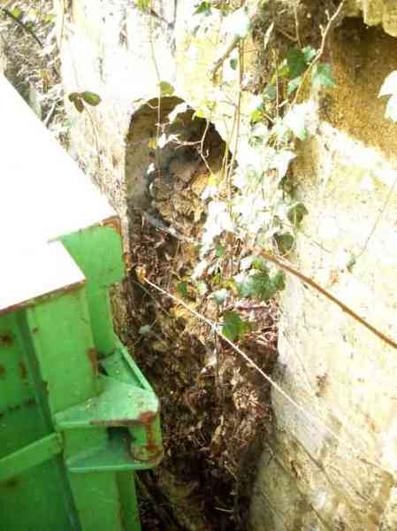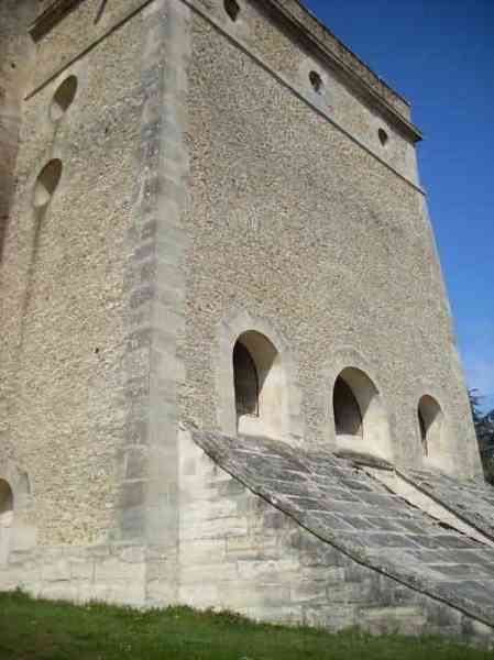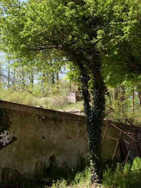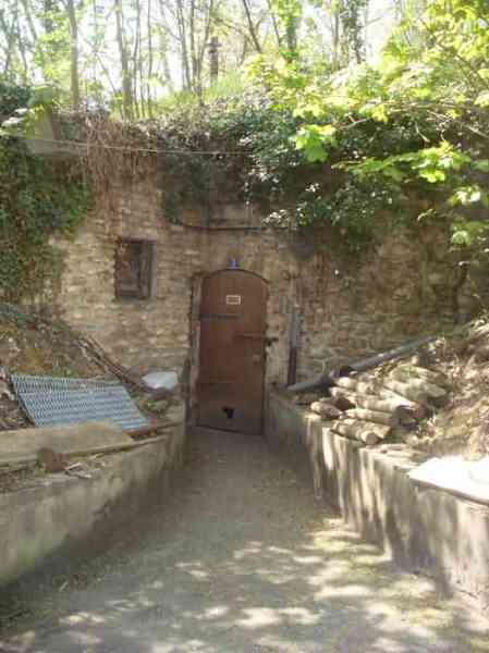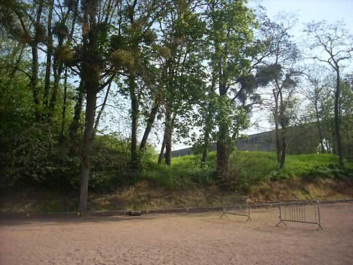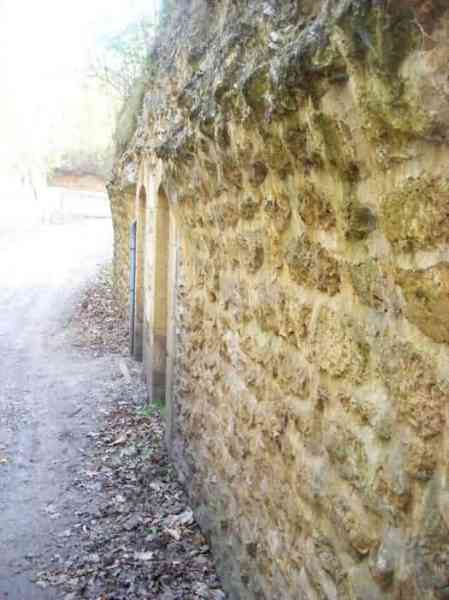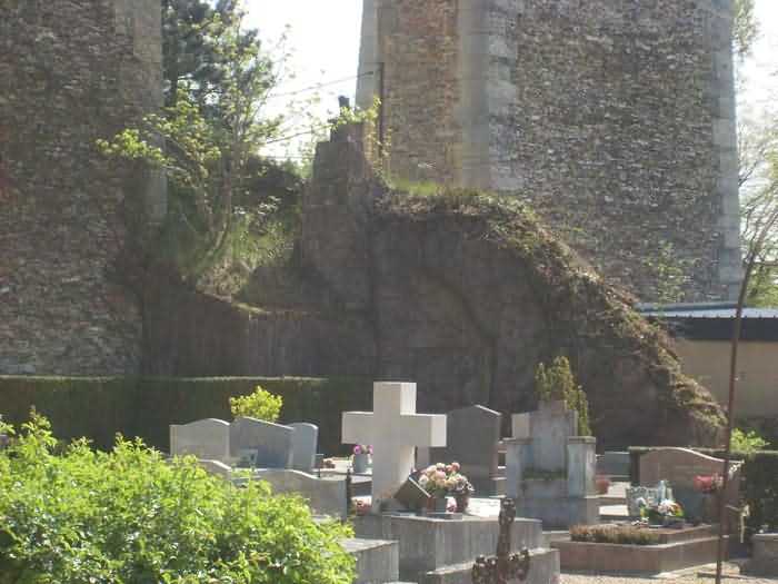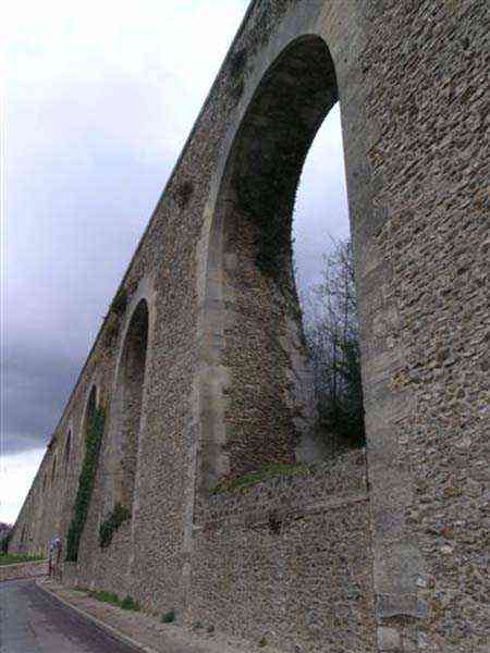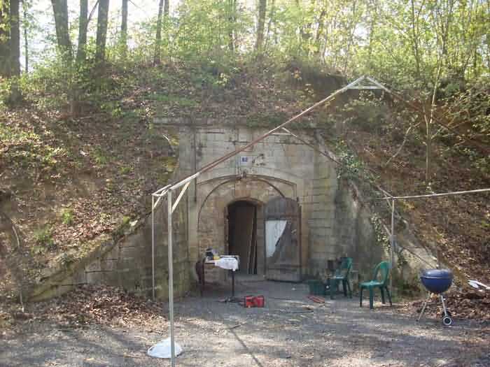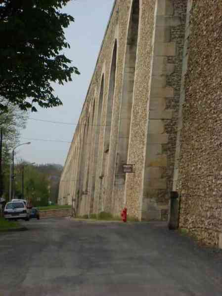 Fortress Paris, west of the city, 1879-1880. Masonry annex to the redoubt of the Trou d'Enfer. 164 men, 18 guns. Battery with the particularity of being established around a cemetery, that of Louveciennes. The gorge is marked by the pillars of the arches of an aqueduct and the entrance rests on one of them. The battery takes the form of an irregular pentagon and only fronts II-III and III-IV seem to have been defended, where necessary, by a double caponier. The barracks are aligned along the western flank of the cemetery. It comprises eight small bays on a single level. On its left, it is crossed by a covered passage giving access to the southern limit of the rue du rempart, which goes around the barracks and cemetery along seven sleepers, mostly of the 1879 model and coated. This line of sleepers abuts, not far from salient V, on the mass of the powder magazine. The perimeter of the battery was partially destroyed in 1972. Currently (03/2007) the municipality has installed a waste disposal site there and the barracks is occupied by services and a small theater troupe. The ditch is completely filled in and the powder magazine serves as a boiler room. This battery is worth the trip due to the originality of its environment. The initial entrance, with guardhouse, opens between two piers of the aqueduct. At the time, the cemetery was only located on the right where older graves (1828, 1842, etc.) can be found before spilling out to the left, but also beyond the powder magazine, probably after the decommissioning of the battery. The Louveciennes aqueduct, built between 1681 and 1685, is 640 meters long and has 36 arches, each 23 meters high. Powered by the famous Marly machine pumping water from the Seine, it is hard to believe that the sole purpose of such a gigantic structure was to guarantee the correct pressure and height for the water jets in the parks of the châteaux of Marly and, later, Versailles. The cemetery is home to some famous figures, such as Emmanuel Frémiet, the sculptor who created the statue of Joan of Arc in Paris and the Archangel Saint Michael on Mont Saint-Michel.