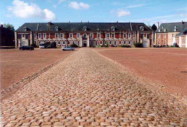 Dept 62 (Pas-de-Calais). Ehemalige Festung, Bestandteil des pré carré von Vauban, von der, um zivile und militärische Interessen in Einklang zu bringen, viele Werke vom Festungskomitee in seiner Sitzung vom 4. Januar 1884 außer Dienst gestellt wurden; nämlich: das Werk Ronville, die Lünettens 168 und 169, die Schanzen 144, 147, 151, 157, 158, 159, die Halbmondschanze 2 und ihre Kontergarde 3, die Lünetteschanze 22, die Redoute 73, die kleinen Werke 75, 76, 77, 78, 79 und die 2 Werke 51 und CC. Praktisch wurde nur die Zitadelle als Kaserne erhalten. Der Oberste Kriegsrat beschließt am 1. Oktober 1888 die Außerdienststellung gefolgt vom Abbruch, nach dem heute nur noch der kleine Bastion Roeux übrig bleibt. Im Gegensatz dazu steht der Großteil der Zitadelle noch und wird vom 601. RCR (Régiment de Circulation Routière) belegt (09/2004). Erbaut von 1668 bis 1670 nach Plänen von Vauban, besaß sie fünf Bastionen, die in einem fast regelmäßigen Fünfeck angeordnet waren. Die Kombination von Terrakotta-Ziegeln und Kreide macht Gebäude wie das Arsenal oder die Kapelle Saint-Louis zu architektonischen Wundern. Wir konnten dort kein einziges Bauwerk aus der von diesem Index abgedeckten Zeit ausfindig machen. Die neue Militärkarte, die im Juli 2008 enthüllt wurde, kündigt die Auflösung des 601. RCR im Laufe des Jahres 2009 an. Wir wissen nicht, was das Schicksal der Zitadelle sein wird.