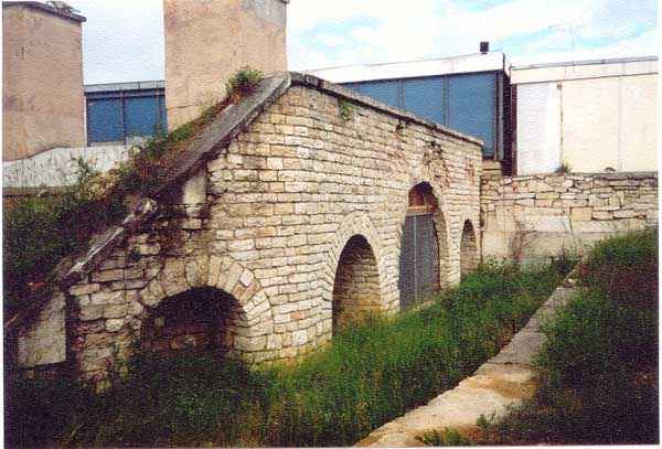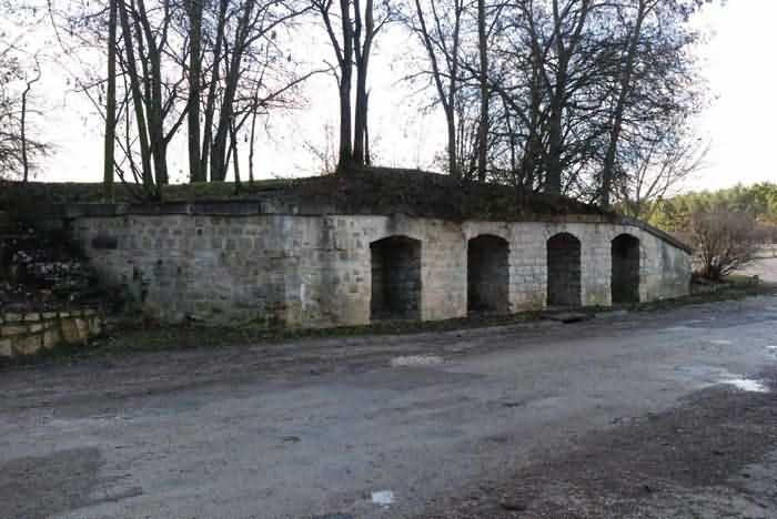 Dijon Square, north of the city, 1881-1883. 321 m/alt. We have not discovered any Boulanger name for this battery. It is a trapezoidal structure with a re-entrant gorge. Surprisingly, on aerial views, it appears practically as large as the eponymous fort, the latter located ± 1000 m to the west. We have not been able to find any archives concerning this battery, so we are only able to describe what we saw there. Nowadays (05/2002), the battery would easily go unnoticed, so much has it been modified. All of its ditches have been filled in; all, to within a few dozen m³, of its cover earth has disappeared. The counterscarp is no longer visible and the scarp is now represented only by a few meters of what has become a low wall, on either side of the entrance. The latter shows a semi-circular porch with, both on the left and right, the two windows of the guardhouses. These four windows and the porch form the back of a rare crenellated drum, a drum of which only the left half remains. This entrance is no longer used as such since the entire left part of the battery has been bristling with modern buildings for the use of the Community of the Children of Emmaus who have the use of the premises. If it is now impossible for us to define the way in which the ditches were flanked, on the other hand, the majority of the buildings in the center of the battery have been maintained, sanded, repointed and converted. Access is now from salient I from which one joins the old courtyard running alongside the four large barracks. In this courtyard, the well of the battery is one of the prettiest that we have encountered. Made of limestone, surrounded by a 65 cm coping with a 1 meter diameter hole, it has its ironwork whose top supports the pulley that facilitated the raising of the buckets. According to a companion who was intrigued by our surveys, the water here reaches a depth of twenty meters. If we had been able to enter the premises through the original access, after passing through the tunnel-shaped porch flanked from the two guardhouses, we would have emerged into a small triangular courtyard now covered with a brand new roof to protect items offered for sale. All the walls bordering this courtyard have been renovated as well as their frames. Turning our backs to the entrance, on our right, we have two rooms that may have served as dormitories for non-commissioned officers and officers, rooms bordered by a wide circulation corridor leading to a courtyard where two shelter-crossings and a covered passageway remain. In front of us, a wide corridor opens and quickly branches off to the left to run along the rear of the four barracks (8 x 6 m - total garrison of 172 men) separated from each other by a thick jamb only half the length of the barracks. In its center, on the right, a staircase of a few steps takes us in from a small side into a very elongated room of 24 m by 5 m. The other end of this magazine must have opened under a rooted passage of which only a few vestiges remain. Behind the angle formed by the barracks of the troops and that of the non-commissioned officers and officers, must have been the powder magazine, now completely razed. We have just described very nearly all that remains of the battery. From the outside, we will discover the remains of a third shelter crossing and, since all the covering earth has been removed to carry out waterproofing work, we will have the unusual spectacle of a forest of chimneys which are as many light wells. Note in passing that this battery was connected to the neighboring fort by a buried telegraph line. Sometimes cited as "Norges redoubt" or "Bellefond redoubt", according to the pediment of the entrance the only correct name is: Annex battery of the Asnières fort. For a possible visit, contact the Community office.