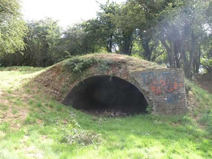 Fortress of Maubeuge, northeast of the city. ± 150 m alt. This is a detached element of the old Vauban enclosure that was somewhat redeveloped with an artillery crest. Minutes from the Defense Commission, session of April 24, 1882, note that 1,250,000 F had already been spent, an amount identical to that already committed at the same time for Cerfontaine fort. There is every reason to believe that there was a transcription error in the amount stated. Indeed, the redoubt received only a few developments consisting essentially of an artillery crest with traverse-shelters. An amount of 125,000 gold francs would correspond more to reality. Today (08/2008), the redoubt is surrounded by residences but the access path is well highlighted. The gorge is open and a ditch with unreveted scarp and counterscarp surrounds an esplanade where, on the left, remains a single traverse-shelter of 8 x 4 x 2.1 m, devoid of arms and with a floor "paved" with baked bricks. On the right of the esplanade, a large hole adjacent to a mound of spoil seems to indicate the excavations of a building that remained at the project stage. A source mentions a fort project that would subsequently have been replaced by that of Boussois. Free access.