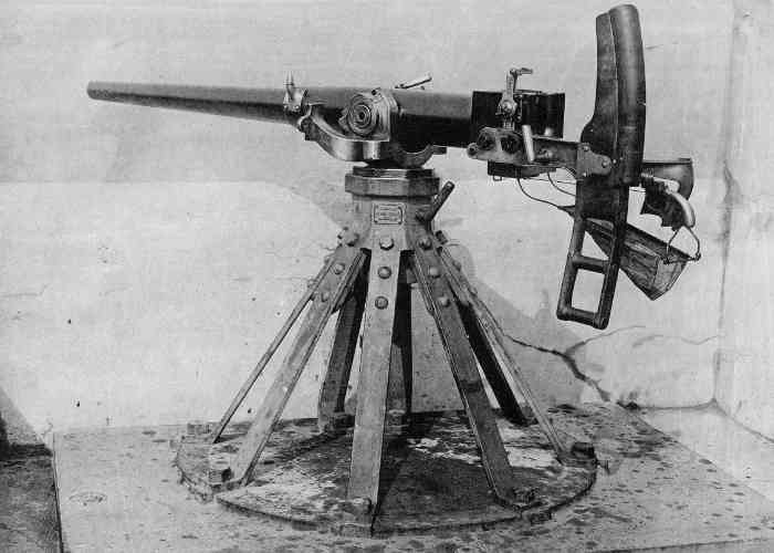 Within the framework of the Séré de Rivières system (1874-1914), French artillery is structured around a triple specialization: field artillery, mobile and intended to accompany troops in maneuver; siege artillery, heavier and devoted to the reduction of enemy strongholds; and fortress artillery, specifically designed for the close defense of fortified works. It is in this last category that the 47 mm model 1885 gun with trunnions belongs, a quick fire (QF) piece mounted on recoilless carriage M 1885. Innovative through its hydropneumatic brake system that practically cancels recoil, this weapon could be served rapidly without having to be re-aimed after each shot. Positioned in casemates and turrets of forts, it was formidably effective against waves of assaulting infantry, its projectiles capable of piercing the light armor of siege engines. This gun thus represents the quintessence of technological adaptation to the requirements of modern fortification on the eve of the First World War.