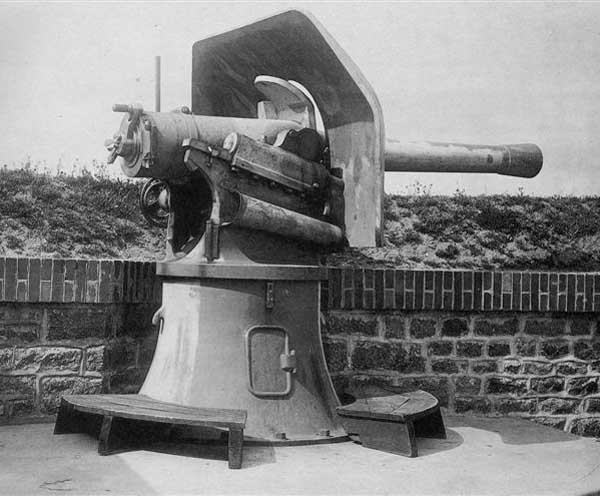 The 95 mm Lahitolle Model 1888 gun, mounted on a coastal G-type carriage, was an adaptation of a piece originally designed for fixed defense and siege batteries. Used with or without a shield depending on the emplacement, it provided close defense for channels, roadsteads, and secondary harbors. Its built-up steel construction and pivot carriage ensured accurate and steady fire, though its rate and field of fire were limited. These guns, often drawn from reserve stocks, offered a practical and economical reinforcement for coastal positions at the turn of the twentieth century.