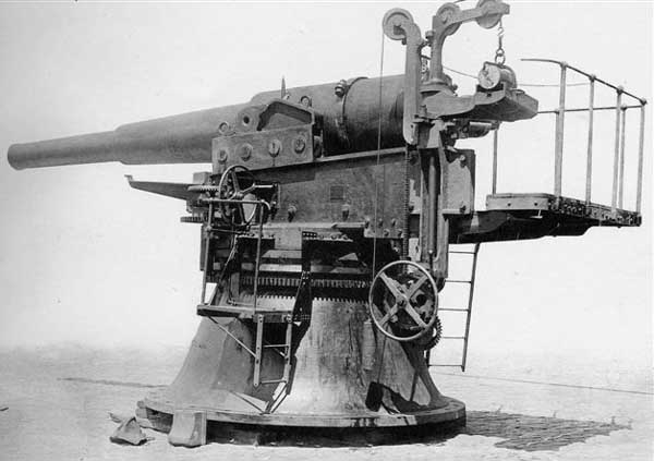 The 19 cm coastal guns formed the backbone of France’s heavy shore artillery during the latter half of the nineteenth century. Derived from naval ordnance, the Mle 1870-1 (long), 1870-2 (short), 1870-93, and related variants were mounted on M 1869 T 84, M 1880 T 84 PA, M 1886 PC, or M 1899 PC carriages depending on battery type. These pivot or fixed coastal mounts provided stable, accurate horizontal training and sustained fire. Some installations included a working platform, loading trolley, or shell-hoisting arm to handle projectiles exceeding 80 kg. The G-type versions of 1875-76 and 1878, derived from fortress mounts, supplemented the defense of river mouths and harbor approaches. Collectively, these weapons represent the transition from the breech-loading artillery of the Second Empire to the quick-firing pieces of the early twentieth century.