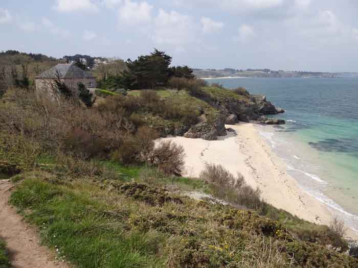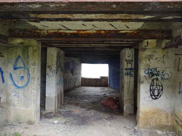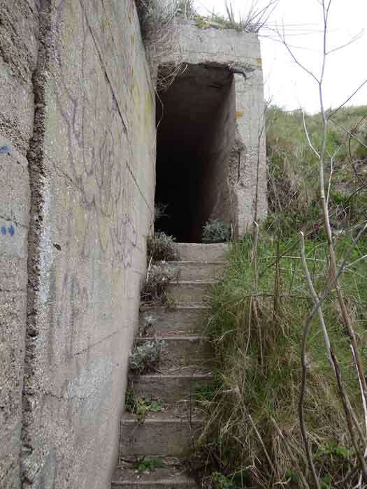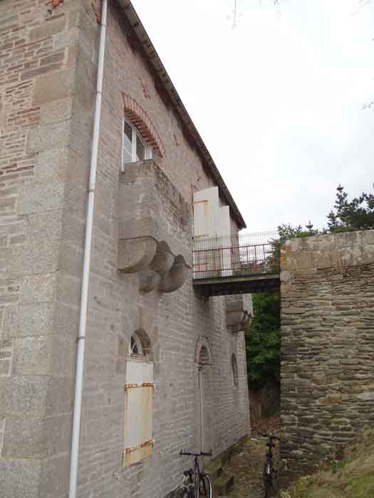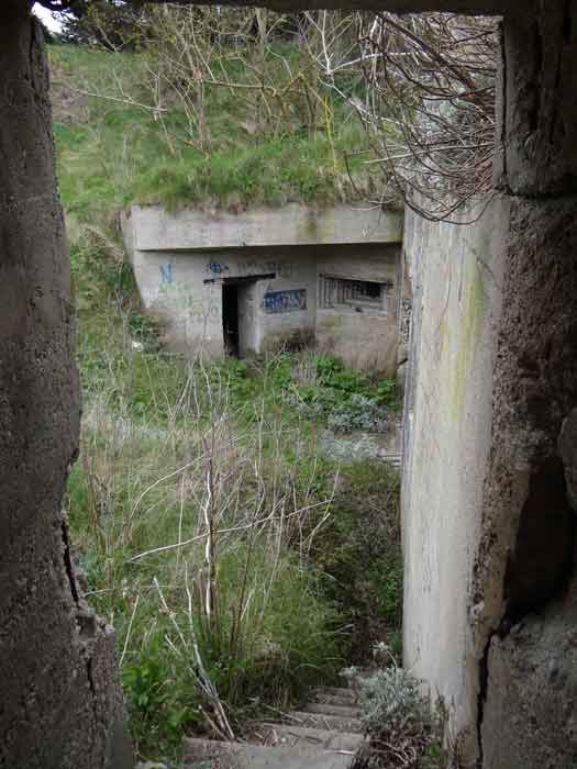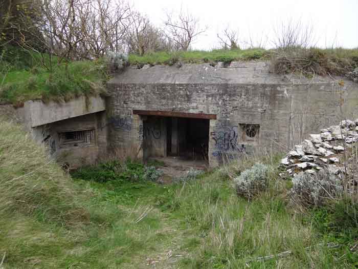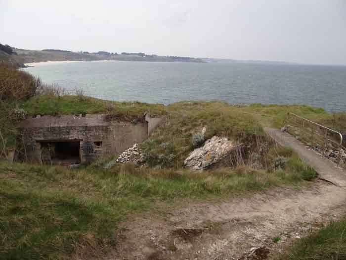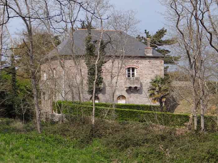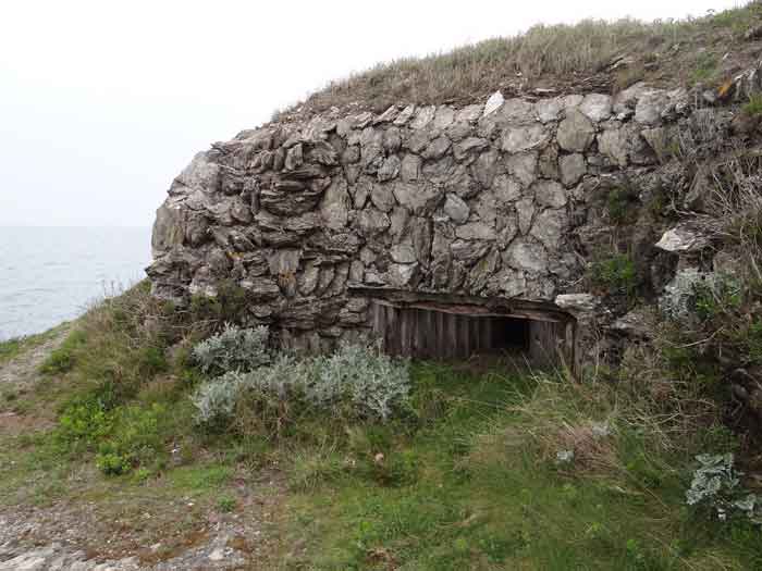 Fortress Lorient, Belle-Île. Southeast of the Palace, at the eastern end of the Grands Sables beach, beyond the Samzun entrenchment. In 1689, Vauban proposed separating the rocky point from the mainland and establishing a battery of four cannons placed behind embrasures. All in all, a battery very similar to the one that can still be admired at the tip of Bugul. Things seem to have been swift, since a map from January 1691 indicates the 19 batteries recommended (see Belle-Île (island of)). Does the map, which we have not seen, specify whether these batteries are built or to be built? In any case, in 1725, they are mentioned again in a list of buildings that have suffered damage. The battery's guardhouse was even raised during work in 1778/1779 (1787?). A report from 1791 indicates that the gorge was closed by a crenellated wall and that there was no ditch. This is rather misleading because, with the German modifications of the Second World War, it is tempting to believe that there was a ditch. In 1793, a reverberatory furnace was built in this battery, which would have ultimately totaled up to six (seven?) cannons. The Coastal Defense Commission of 1841 could only retain it, given its strategic position, and classified it as first and then second importance. However, it was not until 1858 that a guardhouse model 1846 No. 3 was built behind the initial battery. The pediment of the latter, in addition to the year of construction, clearly indicates "La Biche battery" but today (04/2012), it is not possible for us to determine the location of its pieces. We can bet, in any case, that the best place for an optimal field of action was still the old battery. Four cannons and a mortar were planned. Between June 13 and July 11, 1874, no fewer than 22 old batteries were decommissioned on Belle-Île. That of La Biche was one of them. Leased from 1890, handed over to the Domains the following year, it was sold to a private individual in 1891 and the guardhouse transformed into a second home. The Germans invaded the place in 1940. They organized their Wn I 320 there; by concreting in the throat of the old battery a casemate R 680 for a Pak 75 flanking towards the northwest. Perpendicularly, two galleries are dug, one serving as a place of storage of ammunition (three small unlined underground cells) and the other serving a small casemate for two light machine guns remarkably integrated in the rocky point. It goes without saying that the reading of the Vauban battery has become very difficult if not impossible, the German earthworks having largely filled it. A little further to the west, another casemate flanks the Samzun entrenchment, often referred to as the Port La Biche entrenchment. The guardhouse model 1846 is in an excellent state of preservation. It was raised by a floor, protected by a tiled roof and saw the transformation of its battlements into balconies with arched French windows, which gives it the air of an early 20th century villa. The interior is very nicely furnished but there are only a few traces of firing loopholes. It is not even possible to determine whether the terrace included embrasures for artillery pieces or not. The original access to the terrace has been preserved. Counterweights still equip the drawbridge. The building, listed in the Supplementary Inventory of Historic Monuments on November 9, 2000, is available for seasonal rental. It should also be noted that the newspaper Ouest-France of September 1, 2009 reported the sale of the property for which €25 million was asked… recalling that an initial advertisement in June was then asking more than €50 million! When we visited, the guardhouse had not yet changed hands. Vauban's writings mention the place as "Pointe de la Bitche." Private property, access prohibited.