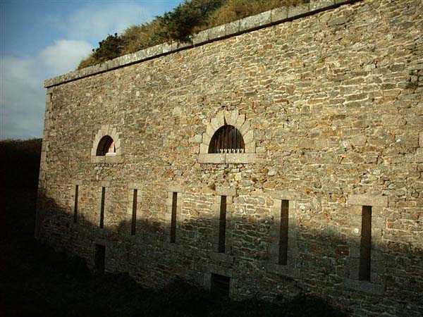 Fortress Brest, west of the city. No fewer than nine buildings will be tasked with preventing any attempt not only to land but also to anchor, in the cove of Blancs Sablons, directly north of the small port of Le Conquet. The beach forms an almost perfect semicircle, the ends of which, occupied by the Fort Ilien to the north and Ilette to the south, are 2000 m apart. Between these two forts, we find, from north to south, three square-shaped defensive structures and a guardhouse model 1846 No. 3 with its top removed. We were faced here with a huge naming problem. The northernmost of the square works is called "fort Saint-Louis" or "Vauban redoubt", the central one is called "intermediate redoubt" and the southernmost one simply "Blancs Sablons redoubt". As for the whole system, we had to call on the expertise of historians Patrick Jadé and Philippe Ruelen to untangle this Gordian knot of various names. The Blancs Sablons system is therefore made up, from north to south, of, first of all, the Porsmoguer battery, then the Ilien fort which is in fact the Ilien north battery, followed by the Ilien south battery located on a rocky point today lined with Atlantikwall constructions, in fact the Panzerwerk of Ilien/Kerlouchan, and completely covered with thorny bushes within which it was impossible for us to detect any old construction, followed by the Quinze battery which is the guardhouse model 1846 today topped, then the three square redoubts, then the Treize battery which was located a little to the west of the southernmost of the square redoubts and, finally, the Ilette fort also known as "Pointe battery" or "Kermorvan islet battery". The Coastal Defense Commission, in its sessions from May 18 to June 1, 1876, will pronounce numerous decommissionings, among which will be recorded those of the batteries of Portz-Moguier North (sic; in fact: Porsmoguer), of Ilien North and South and of Treize. Although built in 1850, the bibliography refers to them as "the three Vauban redoubts"; this must be due to the fact that, in fact, redoubts already existed in the 17th century at this location. They will be, by decision of the Superior Council of War, preserved after 1888, as support for mobile defense. The effective decommissioning was enshrined in the law of May 27, 1889. In May 1898, it was decided to provide three batteries of 4 x 80 mm on the Kermorvan peninsula. The detachment responsible for servicing them, as well as the infantry, would be distributed, as would the ammunition (108 projectiles/piece), in the three redoubts of Blancs Sablons. A document dated January 26, 1911, provided for the device, six 80 mm cannons in the event of mobilization, but without a precise definition of location. Finally, although more focused on the protection of the port of Le Conquet, we will mention the fort of the pointe de Kermorvan which could, if necessary, help support the action of the fort of Ilette towards the open sea, as well as the battery of the Pointe Sainte-Barbe, the latter for information purposes only.