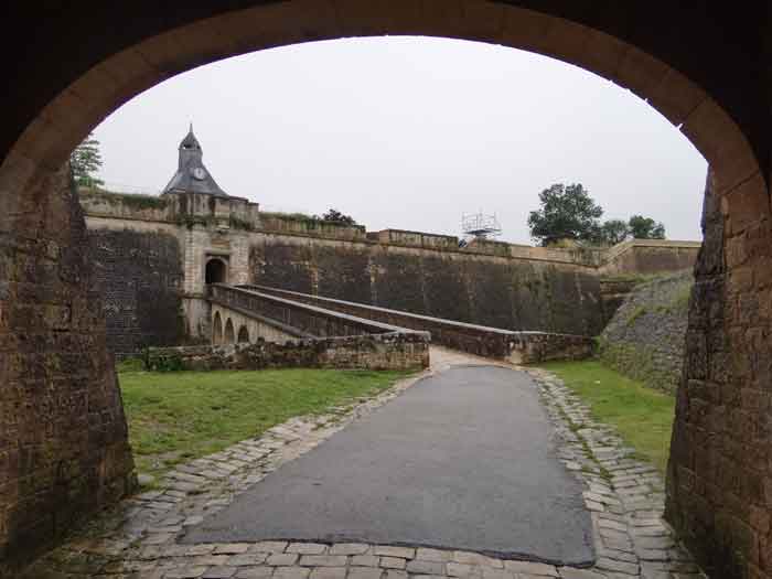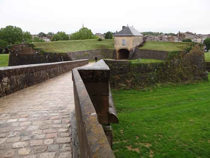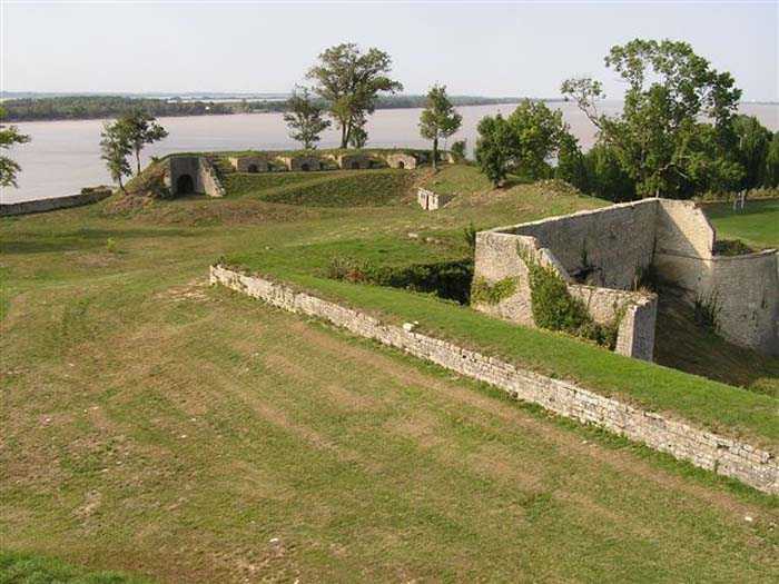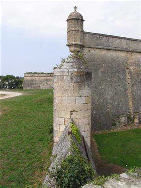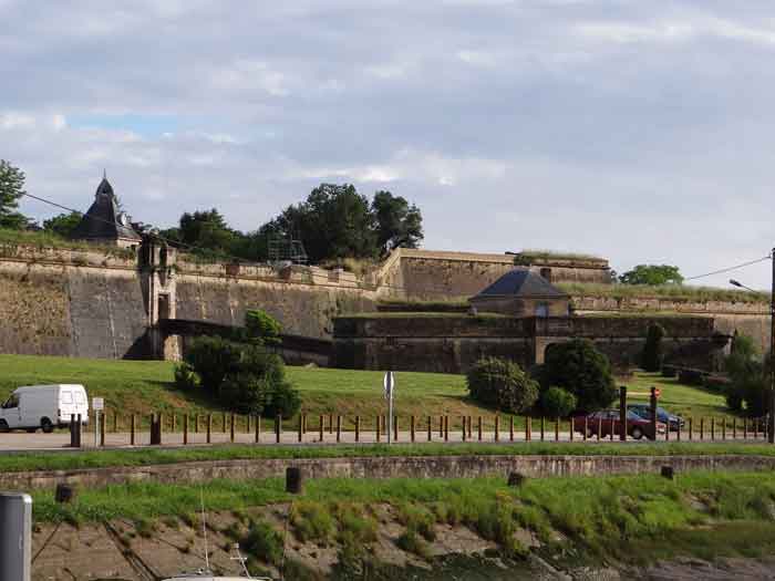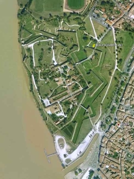 Dept 33 (Gironde). Kolem starého opevněného města zahájil v roce 1652 práce inženýr Pagan (1604-1665), které převzal Vauban, jenž mezi lety 1685 a 1689 zorganizoval bašty a oddělené varhany. Citadela se opírá o pravý břeh řeky Gironde, které dominuje o 45 metrů. Na pevninské straně se skládá ze tří front, které ohraničují čtyři bašty s orlony, propojené třemi nestejně dlouhými kurtinovými hradbami, které jsou samy kryté raveliny. Součástí citadely je malá vesnice, která je dodnes obývána. Spolu s pevností Fort Pâté a pevností Fort Médoc tvořila druhou obrannou linii ústí Gironde. Původně byla tato linie degradována ministerským dekretem z 2. března 1887, ale tento status byl rychle zpochybněn, protože v roce 1912 se zde nacházelo 6 děl ráže 19 mm a 4 děla ráže 95 mm. Na místě se také nacházely tři děla ráže 47 mm T.R. Polostřelecká stanoviště seřazená za parapetem pod palebným hřebenem, zhruba uprostřed fronty podél řeky. Podobně jižně od 19. c. baterie se nacházejí telemetrická a velitelská stanoviště dvoudílné baterie velkého kalibru (24. nebo 27. c.), jejíž palebná stanoviště bohužel zmizela. Absence zmínky o této baterii ve výpisu výzbroje z roku 1912 naznačuje její degradaci před tímto rokem. Dnes (09/2007) z 19. c. baterie zbývají dva duté traverzy a nejméně tři kruhy nosné základny centrálních otočných lafet. Tato baterie se nachází uprostřed severní poloviny hlavního náměstí a vzhledem k T = traverza a C = dělo odpovídala vzorci C-T-C-C-C-C-C-T-C. 47. baterie zůstává viditelná se svými betonovými bloky se čtyřmi úchyty a 95mm baterie vzoru 1888 je v dobrém stavu, na severním cípu citadely. Tato baterie má svá postavení oddělená pevnými příčkami, v jejichž patě se nachází výklenek pro bezpečnostní střely. Postavení jsou určena pro jedno dělo a jsou zde přítomny jak dveře výklenku, tak i dveře zásobníku nalevo od palebného hřebene. Tato baterie má vpravo vzadu malou budovu krytu, jejíž dveře a dvě okna jsou vybaveny bedněním s plochými latěmi. Na dalekém jihu nebyl starý zásobník prachu modernizován. V jeho ohradě, obsluhované zvenčí, se však nachází výklenek s lampou podobný těm ve skalních zásobníkech a navíc mezi ohradou tohoto zásobníku a valem by k tomuto typu zásobníku mohlo vést schodiště uzavřené branou, což se nám nepodařilo ověřit. Citadela byla v roce 1937 klasifikována jako historická památka a je přístupná veřejnosti. Viz Gironde.