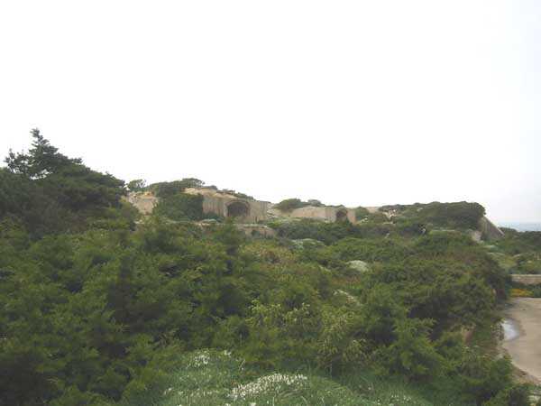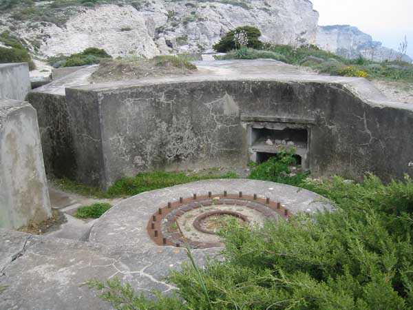 Fortress Bonifacio, 1895. This position is located 900 m WSW of the Belle Catherine battery. There were 2 batteries there which were armed, one with 4 x 95 mm Lahitolle and the other with 4 x 240 mm G Mle 1884 on G.P.C. mounts. The latter had a magazine under rock. These two batteries are connected by a covered way. In April 1914, the strength allocated to it was 1 officer, 33 gunners and 26 soldiers. A little further, to the NW was a searchlight (1899) and a few hundred meters to the east, a blockhouse (1901) prevented an enemy from descending the slopes and reaching the battery and the searchlight from behind. This blockhouse was armed with two 37 mm TR revolver cannons and housed, on 01/04/1914, 40 soldiers, 7 gunners and 1 officer. We do not know what remains of these installations, but between the two wars, the Navy destroyed part of the old 240 mm and 95 mm emplacements to install tanks for 138 Mle 1897 cannons. The whole was sold in 1963 and access is probably subject to authorization.