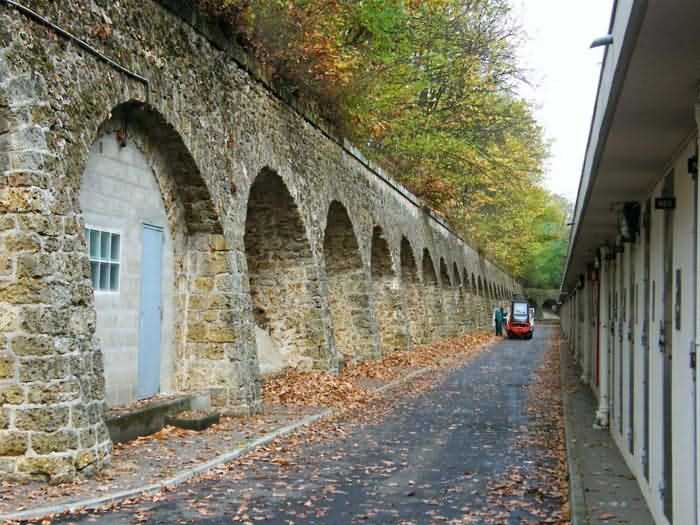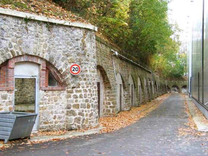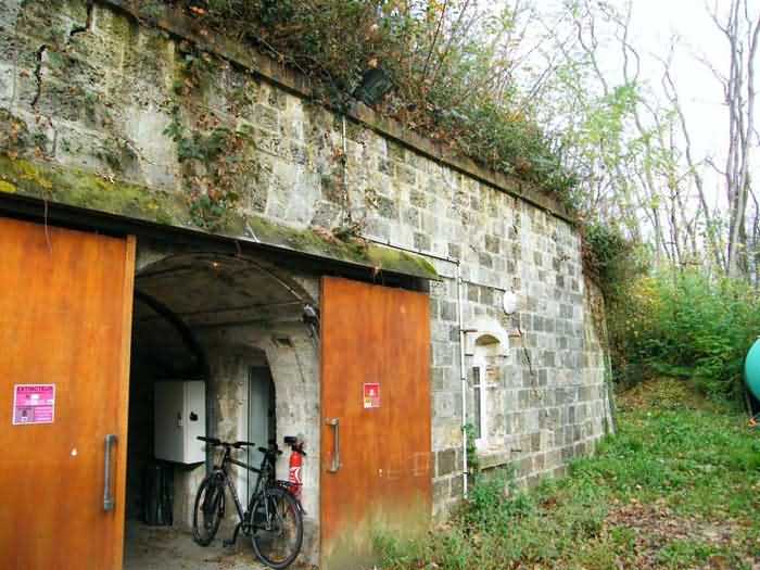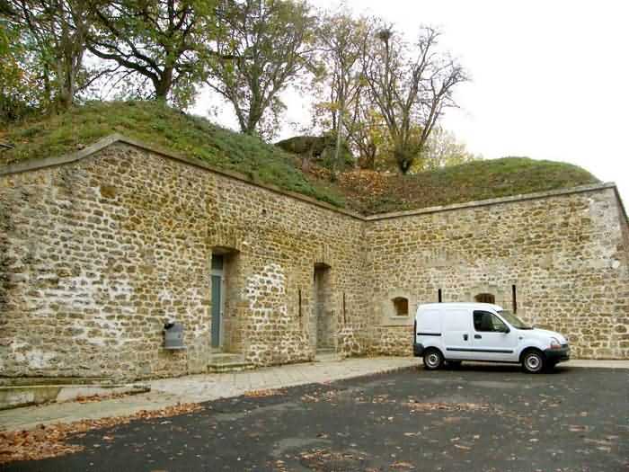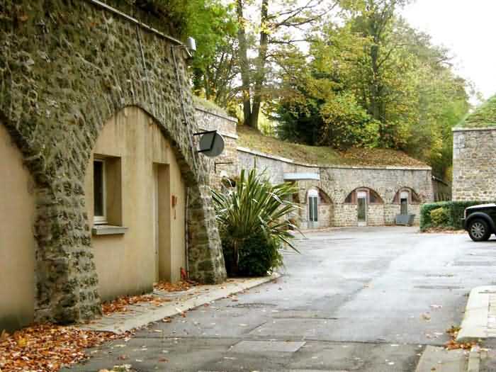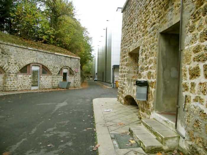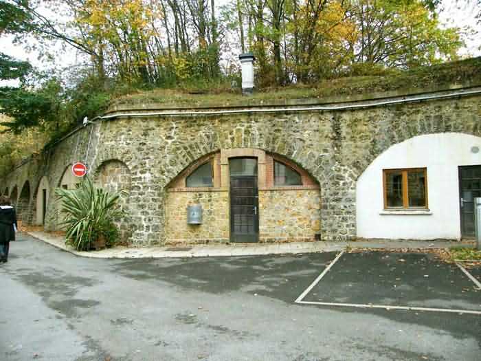 Fortress Paris, SW of the city, 1874-1880. Important structure that would deserve the title of fort, for 440 men and 44 guns, located 1500 m north of the fort of Saint-Cyr. Irregular trapezoid, its ditches were defended by two double caponiers (gorge and salient II) and a wing (salient III). As is often the case in Paris, the entrance is at the bottom of the ditch; the caponier defending the gorge is located to the left of this entrance. The capital leads directly to a barracks comprising only three bays (+ half a bay on each side) but on three levels. This barracks is surmounted by an artillery cavalier, in fact a high battery extending on both sides in an arc until becoming parallel to the lateral fronts of the fort. This high battery aligns eleven shelter traverses which are connected, underground, by an envelope gallery which gallery communicates with the powder magazine located behind the III-IV front. As early as 1911, it was planned to install 2 T 75 and 2 T mi, but this project remained without follow-up. Now houses the archives of the National Cinema Center. Listed as a historic monument.