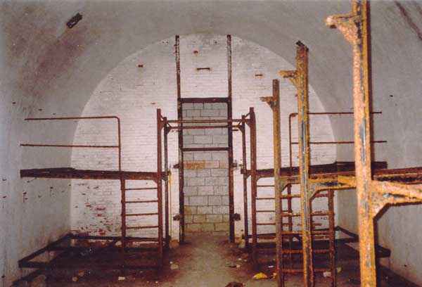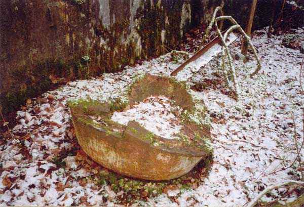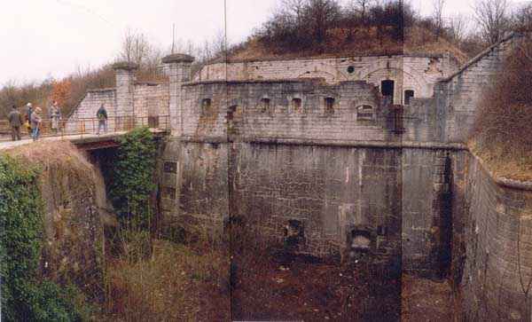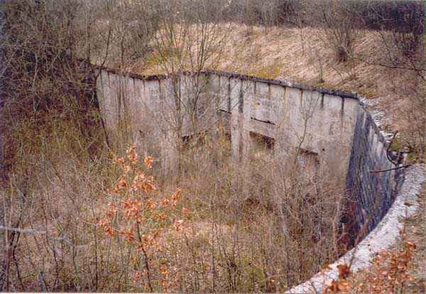 Verdun fortified camp, northwest of the city, 1881-1887. 310 m/alt. Initially called the Caurra fort, the Boulanger decree led to its being named fort Molitor. It is a fort in the shape of an irregular pentagon, with a retracting groove, but without a curtain wall. The hollow of the gorge is occupied by a double caponier and the entrance, simply clad with two pilasters, is located between it and salient I. The even salients were provided with a wing and salient III with another double caponier. As at the fort of Souville, the barracks (2 x 4 bays on a single level) and a number of magazines are arranged in the hollow of two courtyards in light wells, parallel to the axis of the capital. Originally, a street of the rampart framed this central massif. It comprised six double platforms separated by irregularly arranged shelter-traverses. Three were rooted, the one in the capital having a very wide root due to the proximity of the powder magazine. A fire plan dated March 1885 (where the fort is designated "Caurra fort"), gives for each platform two 120 L cannons except behind front I-II where two 95 mm cannons are indicated. From 1892 to 1894, between the gorge caponier and salient I, a war barracks was built comprising four large barracks and some other rooms. This barracks was connected to the surface via a spiral staircase leading to salient I, via the gorge caponier and via a concrete staircase also which joined the end of the pre-existing escarpment gallery towards salient V. This last staircase opened behind the bread oven. The fort underwent further alterations from 1904 to 1907 and in 1913-1914. The First World War also surprised it while it was still under construction. The rampart street was to be completely reorganized. Three machine gun turrets now occupy salients I, II and IV. Each flank has its Bourges casemate and, in the capital, a block for a 75 Mle 05 turret was cast. The turret arrived at Verdun station, but could not be placed due to the outbreak of hostilities. Ordered at the end of 1911 from the Ateliers et Chantiers de la Loire, it was transformed into a turret for two mixed weapons in the interwar period, and installed in the small Maginot structure at Bersillies (Maubeuge). Only the shelter traverses in the center of the fronts were partially preserved. The fins and the head caponier were replaced by counterscarp boxes. Interestingly, only one armored observation post will be placed, that of turret… 75. All the concrete blocks are arranged at their rear as an infantry parapet. From each machine gun turret block, an observation sentry box incorporated into the rampart could be reached by taking steps. These accesses still have their doors (03/2005). The turrets themselves, apart from the counterweight of that of salient IV, have been completely reinforced. The block of that of salient I includes a curious circular chimney of brick masonry opening flush with the concrete, chimney in which a round metal pipe is kept away from the masonry by metal brackets. The ventilation or heating of the block must be affected, but we are not certain. We have only noticed the same singularity on one occasion in the Toul square. The Bourges casemate of front I-II no longer has its staircase leading to the basement. This basement was connected to the war barracks by a rectilinear gallery. The other casemate in Bourges, on the other hand, has a special observatory which has retained its metal elements. Its floor, accessible by steps, consists of the roof of a two-door cupboard topped with a guardrail. Ultimately, the contrast is quite singular between a barracks stripped of everything, practically down to its smallest frame, and the relative abundance of metal remains in the concrete blocks. Thus, long sections of ventilation ducts have come down to us, at least four fans (in three types), grilles, doors, rubble frames, armored shutters, a pump arm, Goux kiosks, etc. The simple trunk of salient IV and the war barracks have particularly retained some assets in this area. The gorge caponier is immense. A rare find, the exterior equipment of its searchlight niche focused on salient I is perfectly framed with specially cut stones. The bread oven is completely destroyed, but the kitchen still displays its two pot brackets. At the level of the cisterns near front I-II (easily accessible), the ceiling of the corridor shows the trace of an impact that has been repaired. Behind the block of turret 75, we find on the ground the cap of the armored observatory, decapitated. To the left of the barracks, we will note a rotunda with walls covered with a cement coating. The fort was transformed during the First World War to be able to offer foot-to-foot resistance. Many chicanes are pierced with crenellations and chutes for grenades. We refrained from exploring the network of galleries resulting from work 17 (totaling 1160 m). It is absolutely important to remember that some of them were dug just under the foundation of the corridors in which one walks without being aware that one is walking on only 5 cm of cement. As such, this fort is dangerous to visit. The glacis include a Pamart bell with two crenellations. During the Battle of Verdun, it is estimated that the fort was targeted by 17,500 shells (mainly 105 and 150 mm), and that of these, 6,000 reached it. Not far from salient V, two annex batteries (7-1 and 7-3 according to the 1912 numbering) are located next to each other. Their only masonry is pairs of ammunition niches. Further on, towards the Marre fort, the undergrowth shelters the BBM-1 combat shelter (for 1 company) and, not far from the latter, below the access road, is an intermediate depot which has retained its guardhouse. Until recently, the fort, abandoned, was occasionally used by the army for exercises. In June or July 2008, its entrance was walled up.