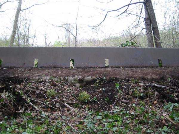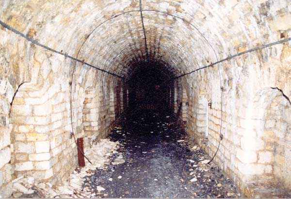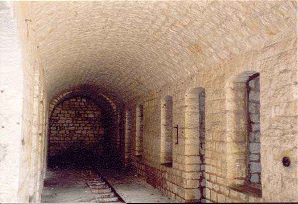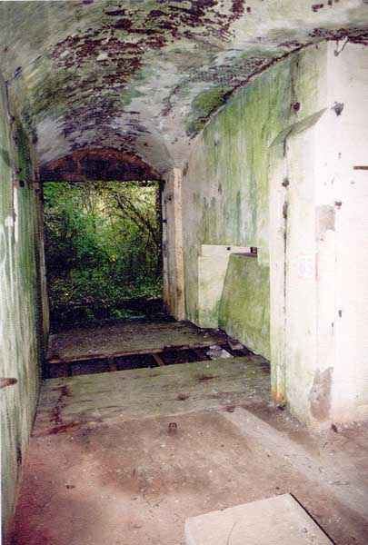 Belfort fortified camp, south of the city, 1883-1886. 421 m/alt. ± 660 men and 32 guns. Called Fort Éblé. A large pentagonal fort with a re-entrant gorge, the Bois d'Oye fort was originally quite classical in its design. Its ditches were defended by two wings at salients II and IV as well as by a double caponier in the capital (salient III). The lateral coffers of the curtain wall ensured the defense of the gorge ditch by their crossfire. The entrance porch opens in the right corner of the curtain wall and, on its left, beyond the guardhouse, five casemates, and as many underground, overlook the ditch. The entrance tunnel is very short and opens onto a vast courtyard. The main barracks, with fifteen bays on a single level, turned its back on the main front. The only powder magazine was located on the left of the barracks, but it is not impossible that a second, identical one gave way to the war barracks. The whole was surmounted by an artillery cavalier. There was, however, a rampart street below, which was only intended to serve an infantry ridge. The fort had to wait until 1906, 1907, and 1908 to be modernized. The defense of the ditches was to be completely redesigned. The right-hand chest of the curtain wall was to be concreted and to its right would receive a guardhouse and a war entrance. Inevitably, this moved the original right corner of the curtain wall away from it, with the new entrance now facing a ramp descending parallel to the counterscarp of the left half-front of the gorge. From then on, this lateral extension would be in the firing axis of the left chest of the curtain wall and, therefore, prevent the latter from firing towards salient V. A counterscarp chest was therefore installed at salient V to compensate for this deficiency. Was the scarp of the right half-front of the gorge moved back? It is possible, but it would be advisable to verify it. The most likely attack axis conditioned the defense of the other ditches, thus a single chest succeeded the wing of salient II, another single chest replaced the double caponier flanking front II-III, and a double chest took place at salient IV. Thus, the fort of Bois d'Oye, with its six fronts, the break of the gorge creating two, has five chests of which only one double and one scarp. This is a unique case. The counterscarp vaults have had their communication galleries dug to a very unusual depth; where usually around fifty steps are enough, here it is no less than 86 steps that must be descended. Visiting the four vaults toughens the calves because once you reach the ditch, you have to climb back up into the vaults and then do the journey in reverse… Starting from the entrance to the war zone, a straight gallery, on an upward slope, heads almost perpendicularly towards the IV-V front. On the right, we pass the basements of a Bourges casemate whose firing axis passes to the northwest the Verpillières works, the Grands Bois and the Haut Bois. Immediately after passing the staircase leading to the firing chambers of this Bourges casemate, still on the right, we find two bread ovens in a concrete casemate. We have very rarely observed this, especially since it is a new handling facility, the original one being located to the left of the large barracks. After this place, we arrive at a crossroads of galleries. On the left, an opening onto the courtyard and the corridor of the war barracks, on the right, the gallery towards one of the three machine gun turrets, in the extension of which a shaft plunges towards the trunk of salient V. The war barracks aligns five large rooms and five narrower rooms. Starting from salient V, behind the fifth room, a shaft runs towards salient IV, crosses with lateral outlets the street of the rampart, will serve a second machine gun turret and will end its course in the plunge towards the double trunk. The right end of the war barracks includes the magazines and the shaft of a 155 R Mle 1907 turret. A small peculiarity, the annular gallery of this armory is crossed transversely by a partition with a lamp crenelation. Behind the main barracks, in the capital, the rampart street crosses another concreted rooted passage which leads to the third machine gun turret as well as to the vault of salient III. In salient II, a last concreted rooted passage gives access, on the ditch side, to an infantry shelter with observation sentry box and to the shaft towards the counterscarp vault, on the massive side, backing onto the premises at the left end of the large barracks, we find the block of a 75 Mle 05 turret and its armored observatory. Strangely, although covered with earth and protected by a solid thickness of concrete, the entrance to the axis of the block is directed towards the outside of the fort. During this redesign of the fort, we took the opportunity to level all or part of its artillery cavalier. Later, during the First World War, slightly buried galleries, probably even dug in the open air, concreted and then covered, would connect all the concreted parts of the fort. Their route passes in front of the main barracks, and under the floor of the covered passages. Visited in October 2001, the fort, although abandoned, was in a relatively satisfactory state of preservation apart from the invasion of the ditches by vegetation. Several beautiful masonry works had caught our attention, whether in the descent towards the left (unconcreted) coffer of the curtain wall or at the rear of the barracks. The escarpment entrance has a staircase leading to the basement. This staircase takes an enormous shaft and leads under the drawbridge (with a bascule below), almost two meters lower than the bottom of the counterweight housing. The powder magazine in the left wing, with a semicircular vault and a capacity of around 70 tons, still has a good number of door frames lined with their flame-proof mesh. The two shelter traverses behind front I-II remain. While it is necessary to fight against all the thorny and