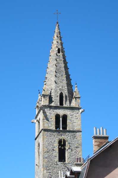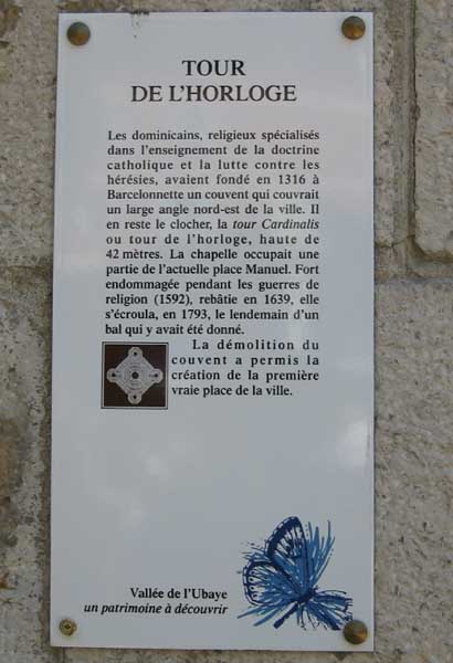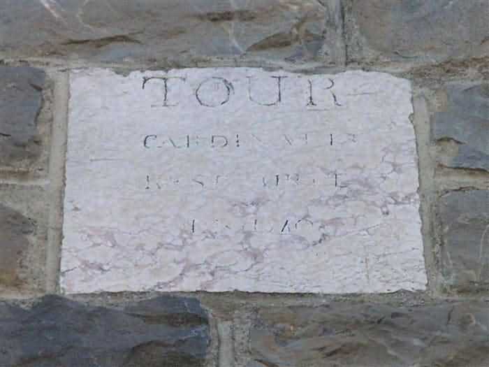 Fortress of Tournoux, southwest (downstream) of the fortress. 1135 m/alt. An optical communications relay was installed in the Clock Tower whose origin dates back to the year 1316 and which is 42 meters high. This bell tower (of a chapel that collapsed in 1793 and was never rebuilt) is sometimes called "Tour Cardinalis". It relayed, towards the battery of Col Bas, messages coming from the batteries of Vallon Claous, Viraysse and Roche-La-Croix via the fort Serre de l'Aut and post A of Cuguret. The tower was restored in 1908 and 1986. In the spire of the bell tower, openings seem perfectly suited for the role of optical post, but similar openings have been identified in many bell towers of the surrounding villages. We were unable to enter the interior to verify the presence of any potential remains (05/2008). Note that the tower supports two rather unexpected monuments; one in memory of the 240 French who returned from Mexico (the Ubaye valley once experienced significant emigration to this country) to defend the national soil in 1914 and who fell on the Field of Honor, and a second in memory of the eleven Mexican citizens who died for France during the first world conflict.