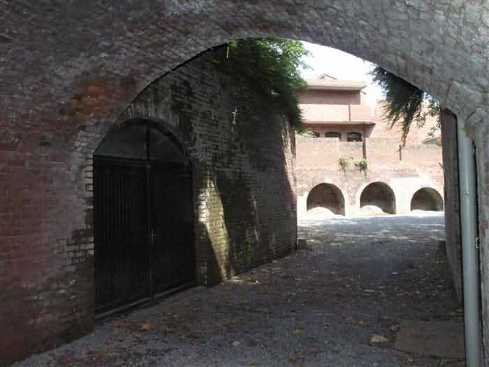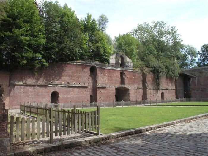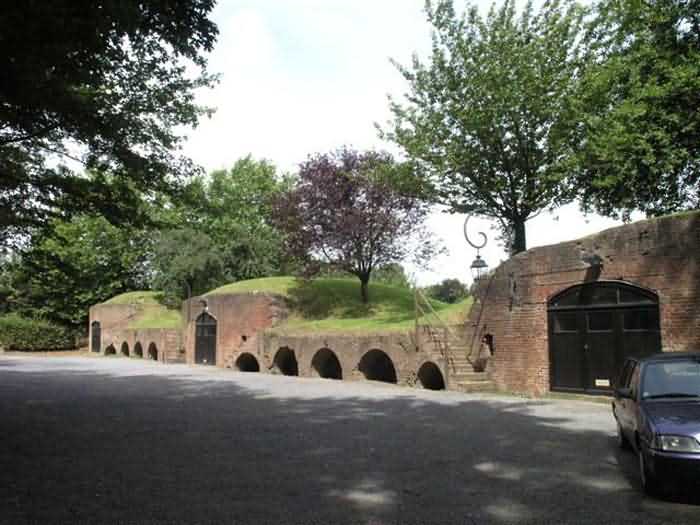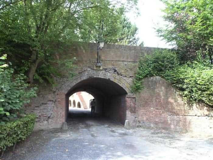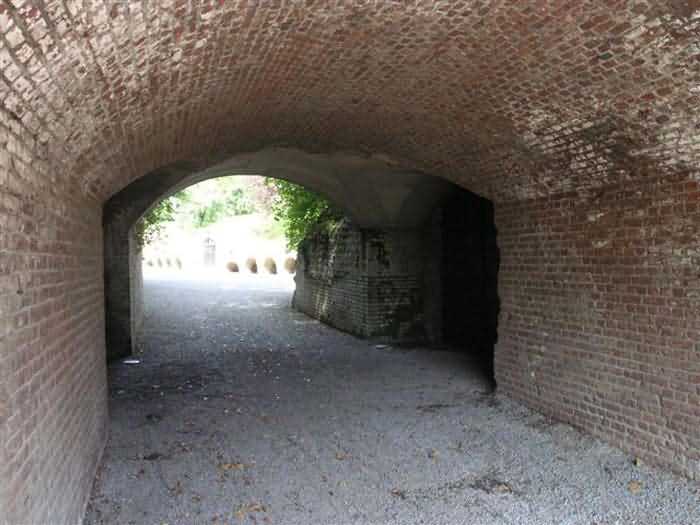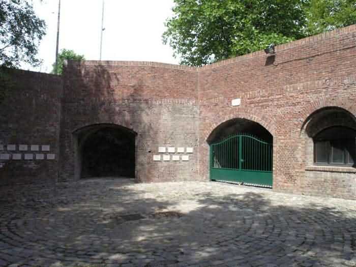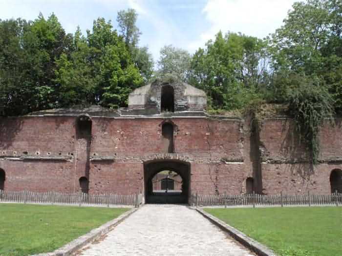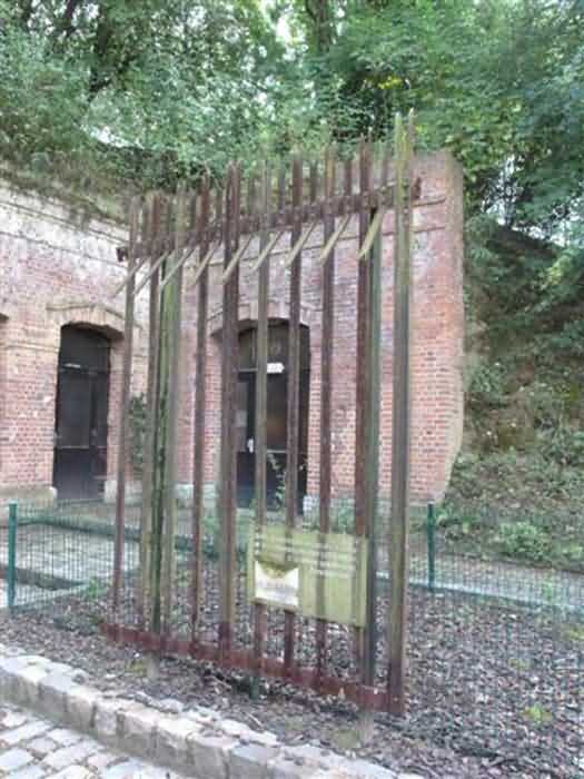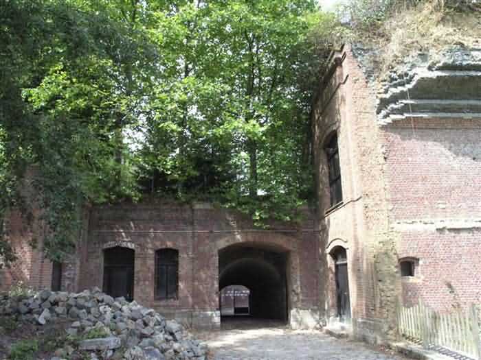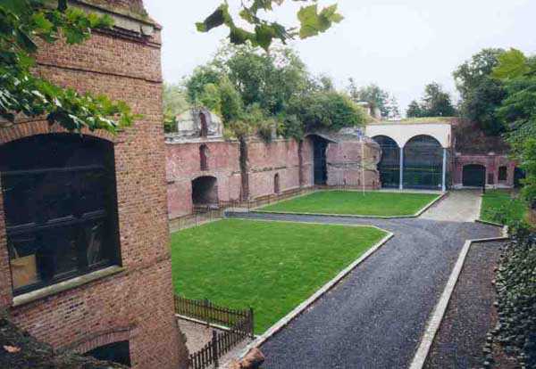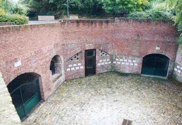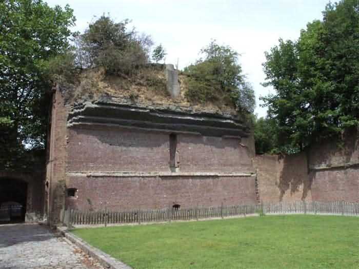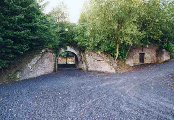 Fortress of Lille, north-north-east of the town, 1879-1883, 33 m above sea level. 792 men, 38 pieces including 2 under armoured turret Mougin Mle 1876, 10 for flanking, 4 for indirect fire, 4 mortars, 14 on the rampart and 6 in the annex battery. Named fort Lobau (often written Lobeau!). The location of the fort on the road to Menin was long subject to discussion. It should not be too eccentric relative to its neighbours and the least bad solution consisted of implanting it 1000 m behind the village of Bondues, while being conscious that the enemy could profit from the cover of the dwellings to conceal its artillery. From the start, as we have just mentioned, the armament schedule planned for 4 pieces for indirect fire and 4 mortars but also the turret for, if needed, effecting direct fire with an acceptable calibre. It would be the only turret of the Lille stronghold. Schematically, the fort is identical to those of Mons-en-Barœul, Englos and Seclin. It is a trapezoid with a re-entering gorge, whose ditches were defended by an aileron (salient II) and a double caponier (salient III). The crossfire of the coffers of the curtain wall ensured the protection of the gorge ditch. The depth of the curtain wall housed the gorge barracks, six bays on two levels (0 and -1) separated into two lots of three by the entrance porch. Once this porch was passed, one emerged into a large transverse courtyard in which the rear of level 0 of the gorge barracks and the seven bays on two levels (0 and +1) of the troop barracks faced each other. On either side of this courtyard, two tunnel passages departed laterally, which debouched onto other small courtyards where the rampart street began, serving on the way two powder magazines implanted perpendicularly to the lateral fronts. It seems that, similar to what can be seen at Mons-en-Barœul, these courtyards also gave onto a traverse-shelter. The tops of the barracks were to be organised as an infantry crest. The arrangement of the traverses between salients II and III is identical to that described in the article on the fort of Mons-en-Barœul, with its Mle 1879 traverses and its two rooted passages. At the level of differences, here we could not verify the parapets of the firing platforms, the pairs of traverses outside the rooted passages (behind salients II and III) had two levels and, above all, the passage descending to the double caponier passed under the Mougin turret. The traverses have their lateral abutments slightly set back and these abutments have no ventilation shafts. At the level of the troop barracks, the infantry sally port to the top debouches laterally at Mons-en-Barœul and longitudinally at Bondues. Insignificant differences, let's agree. Apart from the turret and the presence of an additional bay in the troop barracks, one final detail must be mentioned: to the left of the sally port in the capital on the rampart street, is a casemate for indirect fire, apparently the only one in the stronghold. The consulted plans attribute the role of forge to this casemate, but this duality is not rare in the case of such casemates. Bondues was nothing less than the most important fort of the stronghold. Abandoned without a fight following the decommissioning of the Lille stronghold on the first of August 1914, it is known that the Germans used it immediately to fire on Menin. We do not know, however, if for this they used the turret, but a German photo reputedly taken in 1914 or 1915 shows this turret devoid of cannons. When, therefore, were they removed? It had been installed in 1882, in the axis of the road to Menin, a road whose implantation of the fort broke the straightness. Upon their departure in 1918, the Germans caused some damage to the edifice. Having remained in the military domain, the fort served as a setting for smokescreen experiments in 1933. We do not know if it was occupied in May 1940, but it probably was not. The Germans, on the other hand, installed themselves there again. Alas, it was to accomplish a most sinister task; between March 1943 and May 1944, in the left courtyard, they shot 68 men, resistance fighters or alleged such. On the first of September 1944, at the moment of retreating, the Germans blew up the fort; it was 12:25 p.m. If the population was soon moved by the mass grave discovered on the crest of front I-II, it took several decades before things moved. In the interval, the turret was cut up around 1955 and the N 17 was straightened again, becoming the straight line of yore. To do this, the entire front III-IV of the fort, substructures of the turret included, was razed. In passing, the annex battery which was in the prolongation of salient IV, was also taken away. This battery, in the shape of a chevron, fired in front of Mons-en-Barœul, on the Croix Blanche and on the heights of Roubaix; it seems to have comprised as only masonry a single enveloped traverse-shelter, whose shelter body was divided longitudinally into two equal parts. The façade comprised two doors side by side, each adjoining a small window. Thus the space was divided into two equal parts, one reserved for the men, the other for the ammunition. The fort was decommissioned on 23 August 1962 and acquired by the municipality. It had become a dump. Yet, as early as 1949, projects for a monument to the memory of the executed were proposed. It would be necessary to wait until 20 September 1965 for the Bondues memorial to become a reality. Another fifteen long years would pass before the fort itself aroused the interest of some history enthusiasts. The idea of creating a resistance museum germinated little by little and ended up materialising with its inauguration on 20 September …1997! Today (08/2008), not much remains of the fort. The museum, small but interesting, occupies the few rooms to the right of what was the troop barracks. In the museum, one can still see one of the helical staircases to access the top, a loading workshop having only 