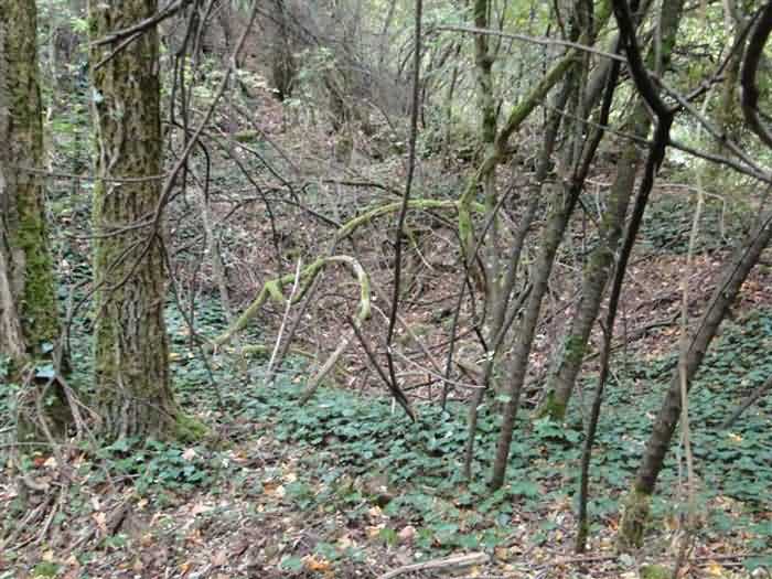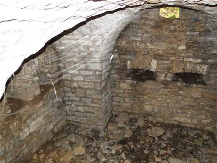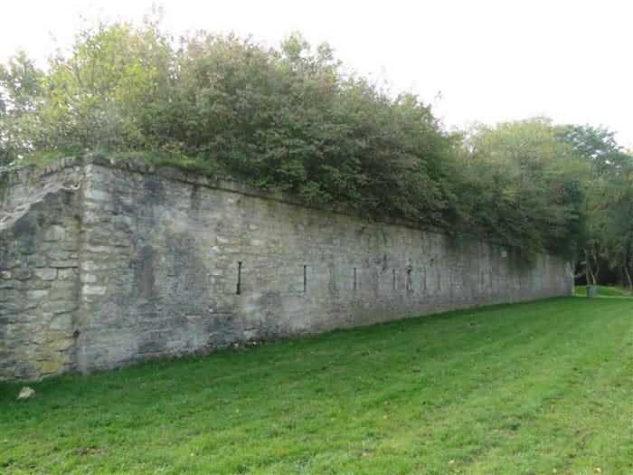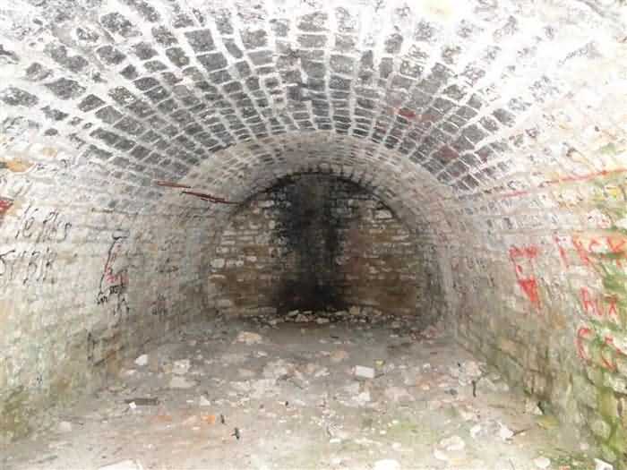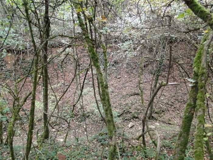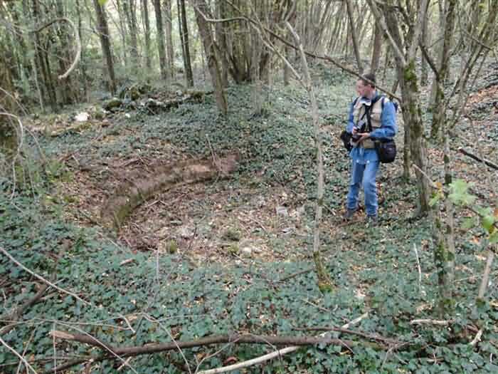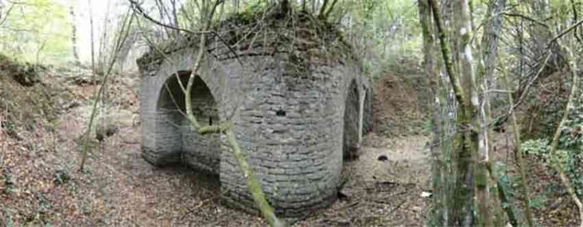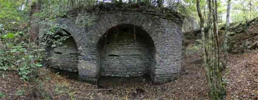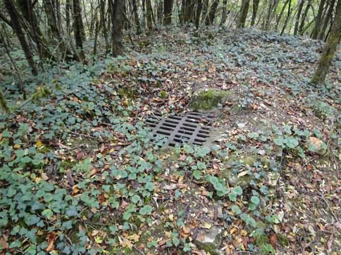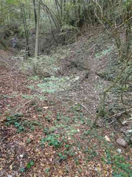 Belfort fortified camp, SSE of the city, 1874-1875. 380 m alt. 51 men and 11 guns. Called ouvrage Amey. This ouvrage, as its name indicates, is the redoubt of the defensive organization of Bosmont. It is a fairly small structure, pentagonal in shape with a reveted escarpment and counterscarp. The entrance, without a porch, consisted of two pilasters. Two crenellated walls extend towards salients I and V, but which, curiously enough, do not follow the line of the escarpment. Thus, they join fronts I-II and IV-V a few meters behind the salients. This is a variation of what we observed at the battery of Sermenaz in Lyon. The entrance to the redoubt was located approximately one-third of the way down the gorge. Once through, there was a guardhouse on the left (now gone) and a long, slender building on the right. We are then in one of the two courtyards of the fortification, the second being on the right, on the other side of a very long traverse practically cutting the fortification in two and having served as a magazine for powder and projectiles. From each of these courtyards, we can access a double caponier (salients II and IV). These caponiers have the particularity of having only right angles. No curves enhance their austerity. They are very small and can only be used for musketry. The one in salient II has its embrasures slightly set back from the front wall, while its opposite has these same embrasures advanced to the height of the facade. Behind front II-III is a shelter traverse much wider than that behind front IV-V. The Bosmont redoubt has suffered many insults. Its ditches are largely filled in, especially the gorge one. Earth had been pushed in front of the accesses to the caponiers but during our visit (10/2010), their settlement allowed passage. The traverses had been walled up, but all these walls are pierced. Only the elongated barracks remain inaccessible, but photos taken from the firing loopholes show nothing interesting except the brick vaulted ceilings resting on metal beams. The premises of this barracks are also quite cramped and their ventilation rather haphazard. We note that on the II-III front, two tanks for anti-aircraft guns and a small concrete shelter were sunk, perhaps during the First World War. The shelter is now bordered by a fitness trail and open to all winds. See also Bosmont (defensive organization of) and Bosmont (fort of).