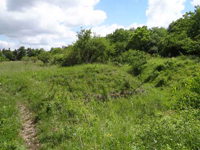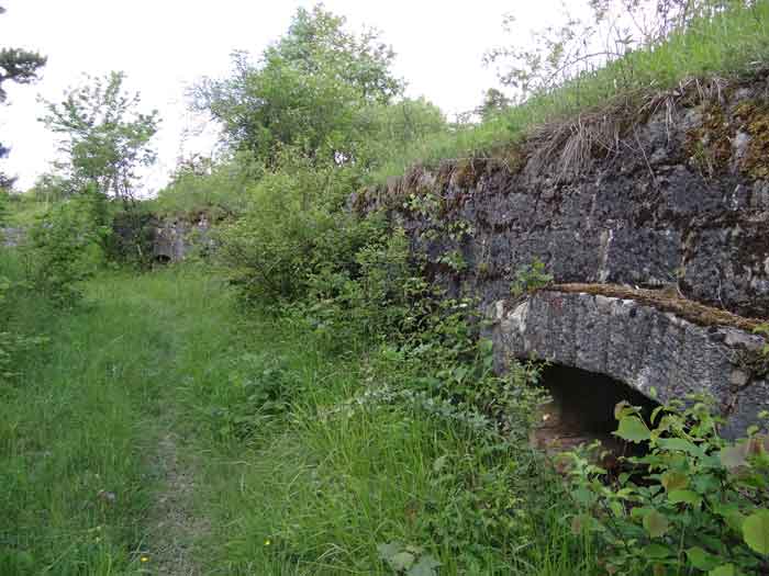 Befestigtes Lager Toul, nordwestlich der Stadt. > 1887. Der Hügel erreicht eine Höhe von 368 m ü. M. Er ist ein Zwischenhügel zwischen dem Berg Saint-Michel und dem Plateau des Forts von Écrouves. 2 Linien von Feuerplattformen, getrennt durch solide Traversen, an deren Fuß sich eine Bruchsteinmauer mit einer Munitionsnische befindet. Ursprünglich verfügten diese beiden Batterien über insgesamt 16 Geschütze. Frei zugängliches Gelände, das Gegenstand eines bereichernden Spaziergangs sein kann, sowohl aus militärarchitektonischer als auch botanischer und landschaftlicher Sicht. Im Jahr 1914 bestand die geplante Bewaffnung lediglich aus zwei 120-mm-Geschützen, da die nördliche Batterie bereits außer Dienst gestellt worden war. Am Fuße und hinter diesem Hügel sehen wir einen noch vorhandenen Hangar für Fesselballons und das Pulvermagazin der Madeleine, die vor Kurzem (2000) verschwunden ist.