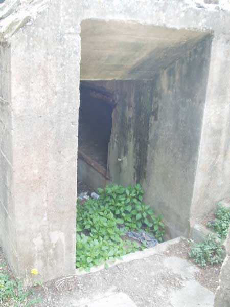 La batterie (juillet 2006) - Détail du monte charge toujours en très bon état dans la traverse nord. Il n'y manque que les câbles pour une bonne reprise de services. Quelques vues sur le passage couvert, son abri et le poste directeur de tir dans la zone interdite.