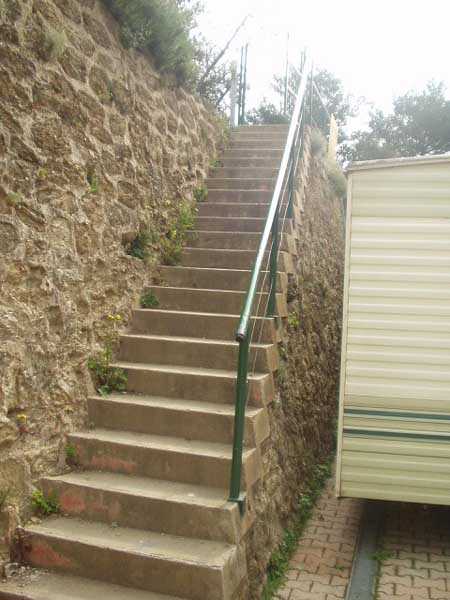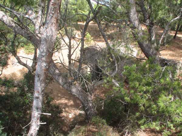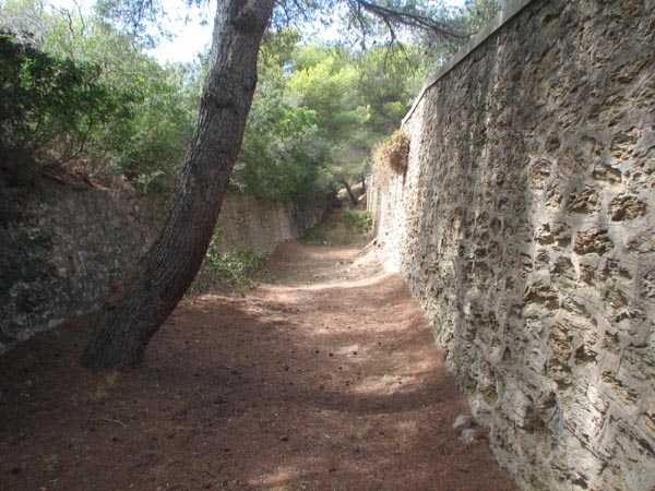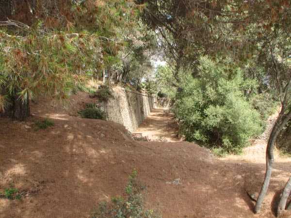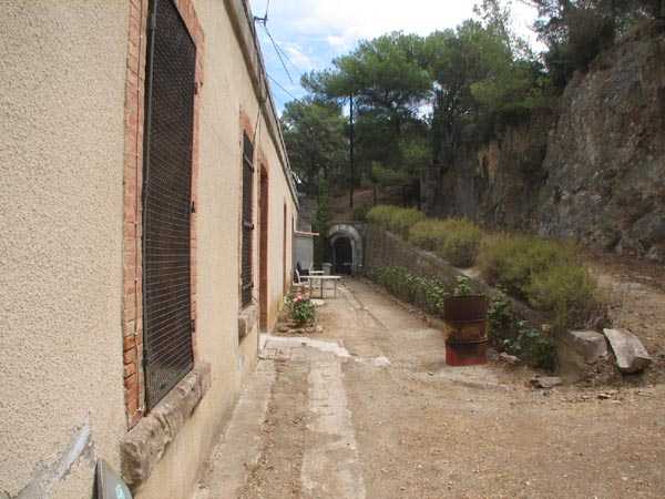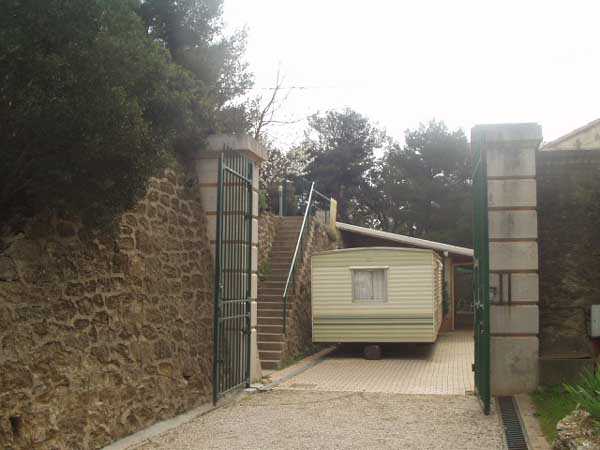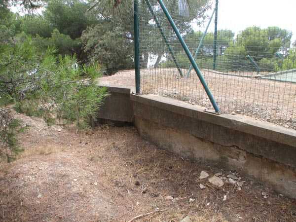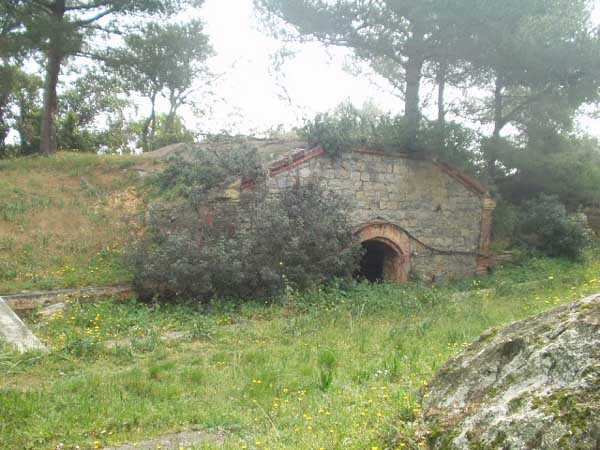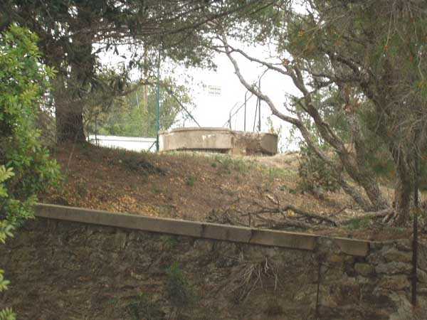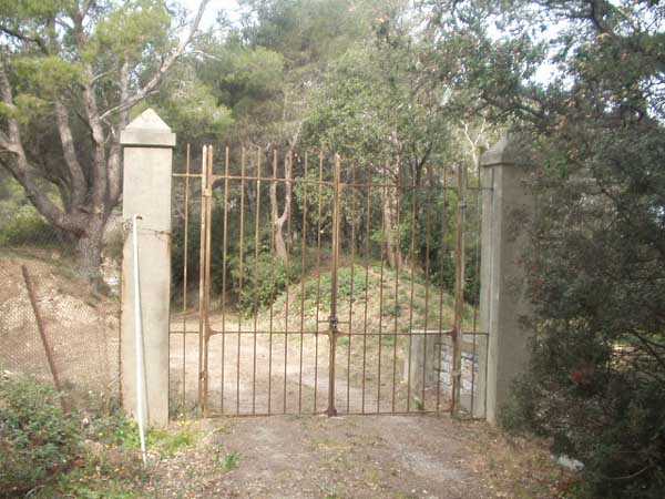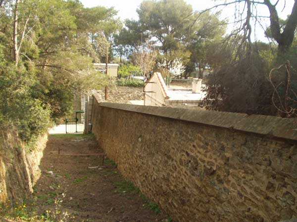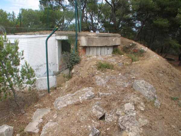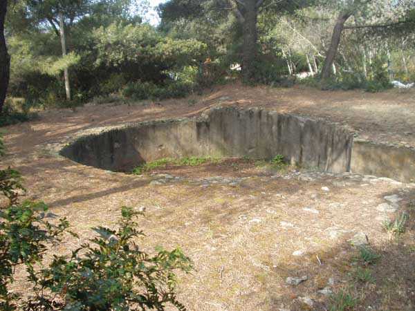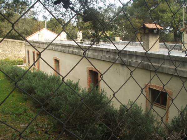 Fortress of Toulon, Giens peninsula, 1884. 59 m/alt. In place of what should have been Fort Giens, for lack of funds, only a battery was created to cover the passage between the mainland and the island of Porquerolles. Irregular hexagon, the battery will be equipped with a ditch defended from bastionets. Wider in its eastern part, it will accommodate four platforms for guns (240 mm?) on P.C. mounts, platforms arranged in an arc. Installed on a ridge, the battery will also have four guns firing seaward and two directed at the isthmus of the peninsula. These latter two had the particularity of sharing the same platform with two of those oriented seaward. The battery will later be provided with a cavern magazine with supply by hoist (whose head still has all its mechanism), then, in the Interwar period, will be considerably modified. Today (04/2006) the battery is closed to access, but one can still see the barracks and several gun emplacements. Sometimes referred to as "Fort de la Badine".